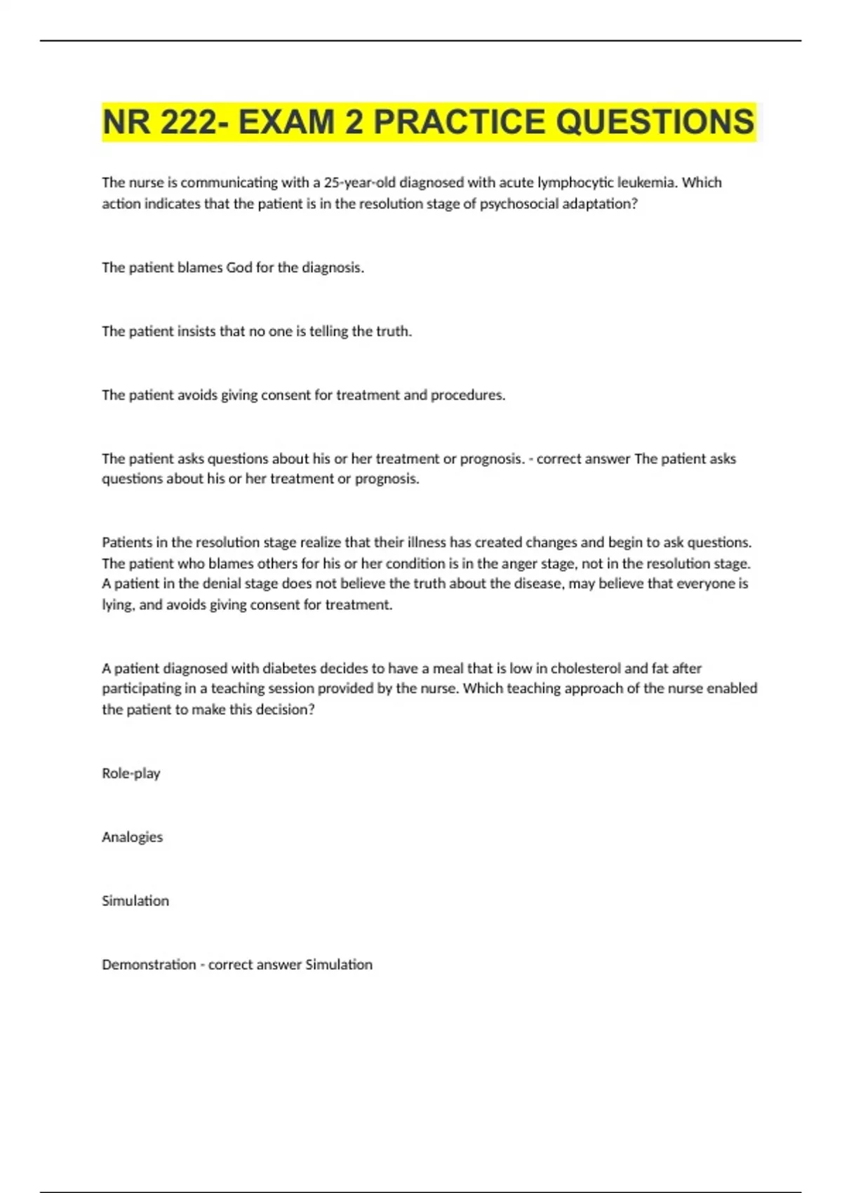 NR 222- EXAM 2 PRACTICE QUESTIONS|2023/24 UPDATE|GRADED A+