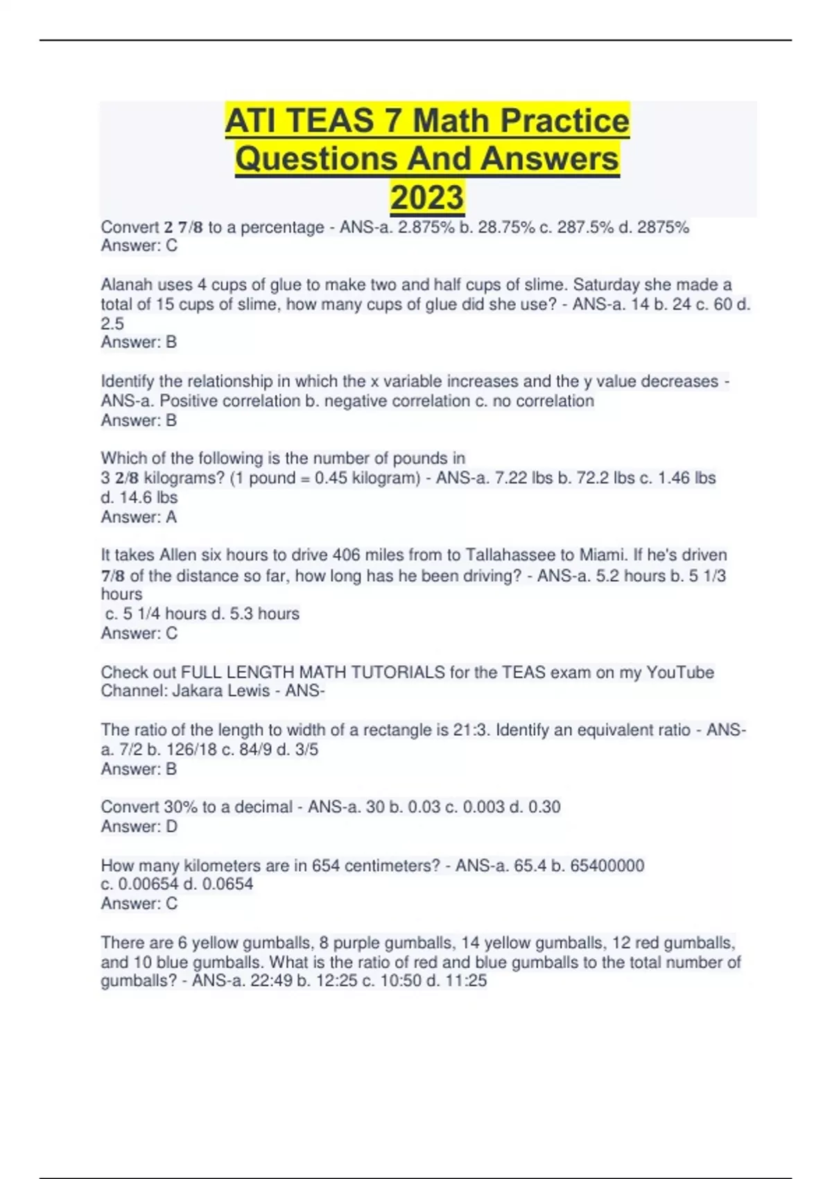 ATI TEAS 7 Math Practice Questions And Answers 2023 Convert