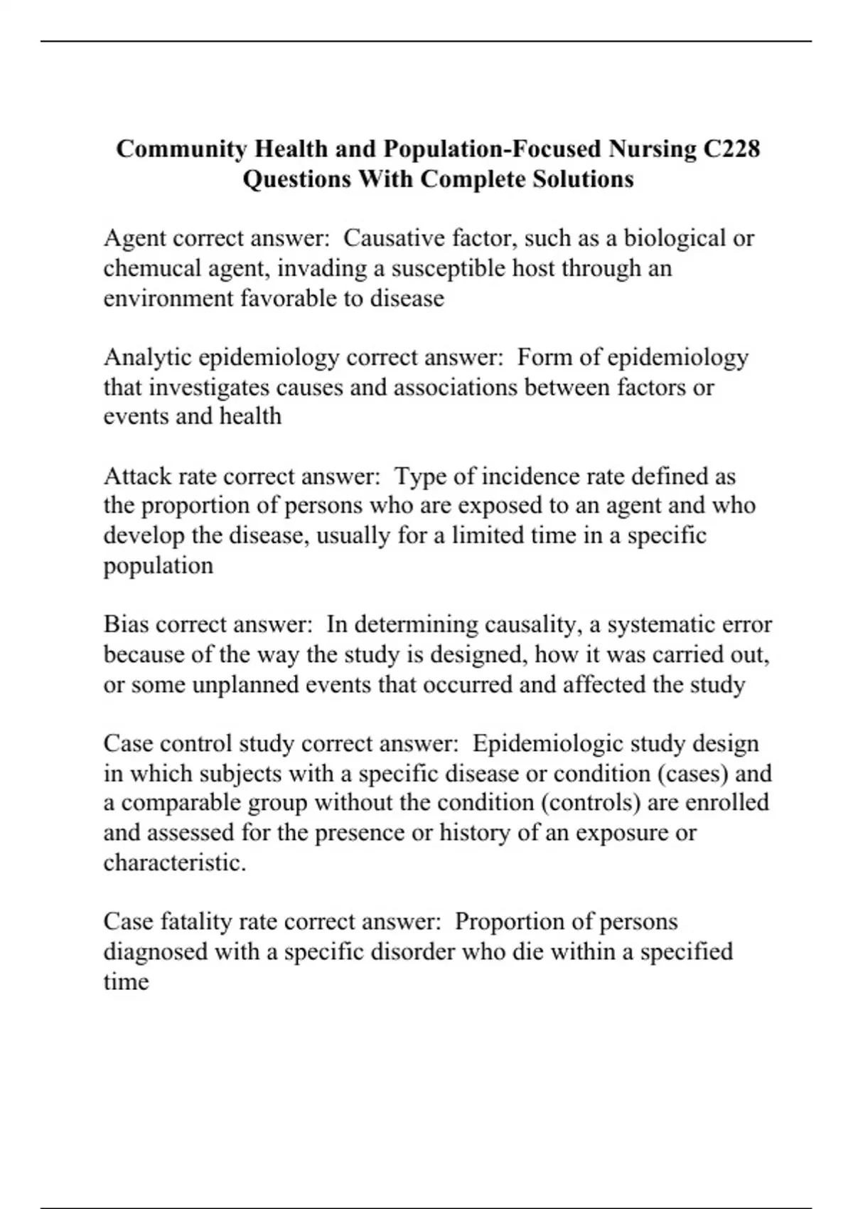 Community Health and Population-Focused Nursing C228 Questions With Complete Solutions