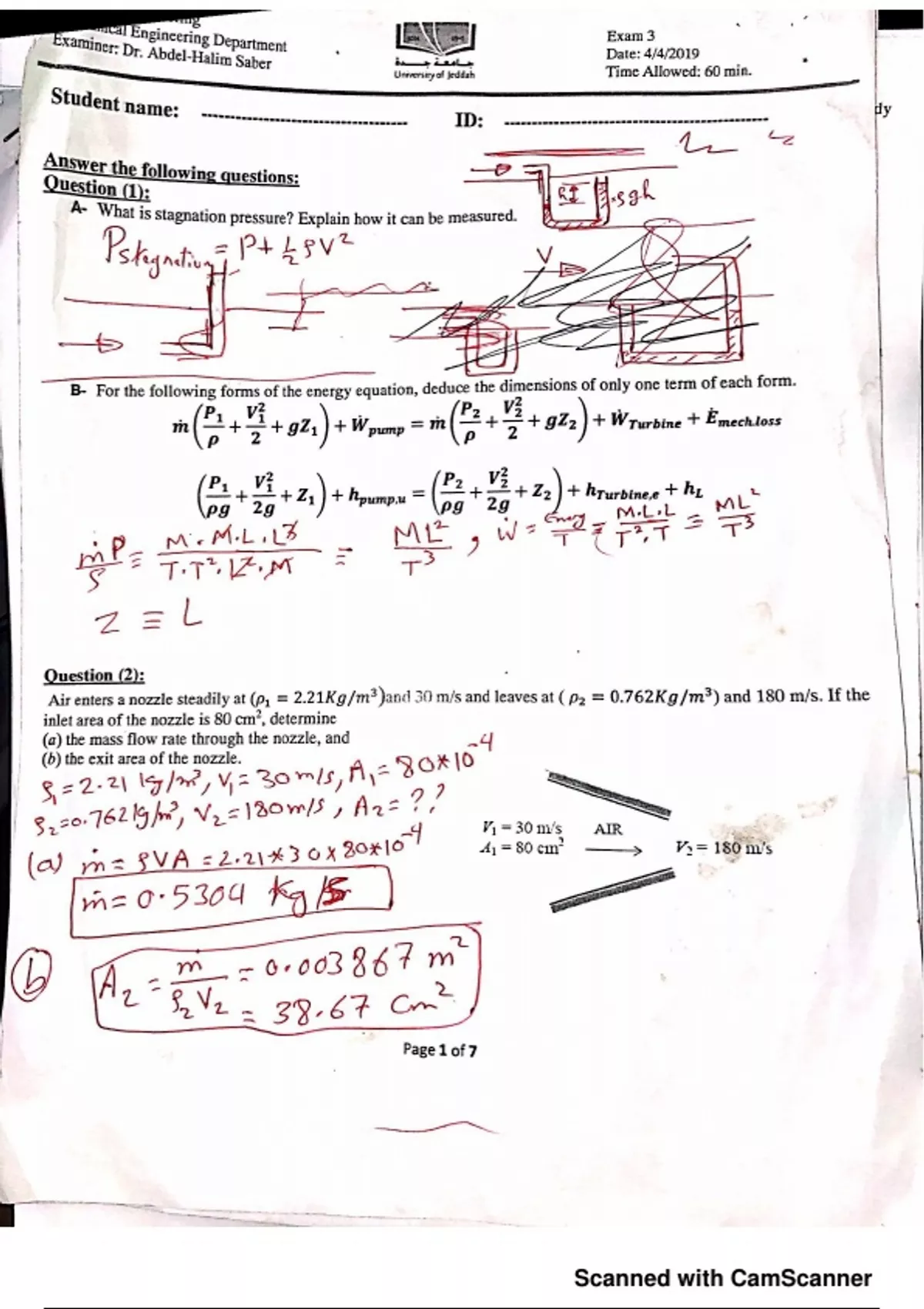Fluid mechanics exam
