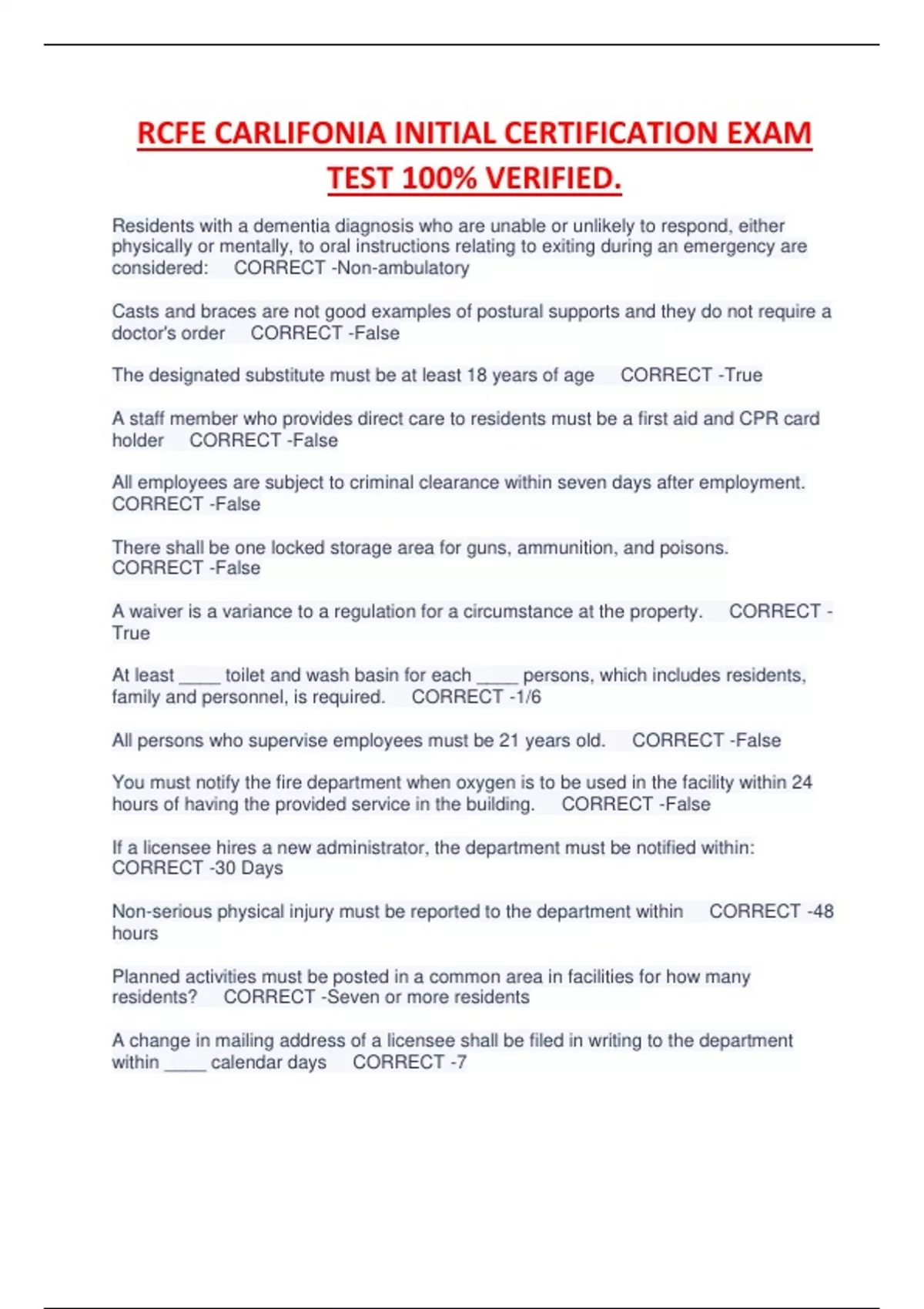 RCFE CARLIFONIA INITIAL CERTIFICATION EXAM TEST 100% VERIFIED.RCFE CARLIFONIA INITIAL CERTIFICATION EXAM TEST 100% VERIFIED.RCFE CARLIFONIA INITIAL CERTIFICATION EXAM TEST 100% VERIFIED.RCFE CARLIFONIA INITIAL CERTIFICATION EXAM TEST 100% VERIFIED.RCFE CARLIFONIA INITIAL CERTIFICATION EXAM TEST 100% VERIFIED.RCFE CARLIFONIA INITIAL CERTIFICATION EXAM TEST 100% VERIFIED.RCFE CARLIFONIA INITIAL CERTIFICATION EXAM TEST 100% VERIFIED.RCFE CARLIFONIA INITIAL CERTIFICATION EXAM TEST 100% VERIFIED.RCFE CARLIFONIA INITIAL CERTIFICATION EXAM TEST 100% VERIFIED.RCFE CARLIFONIA INITIAL CERTIFICATION EXAM TEST 100% VERIFIED.