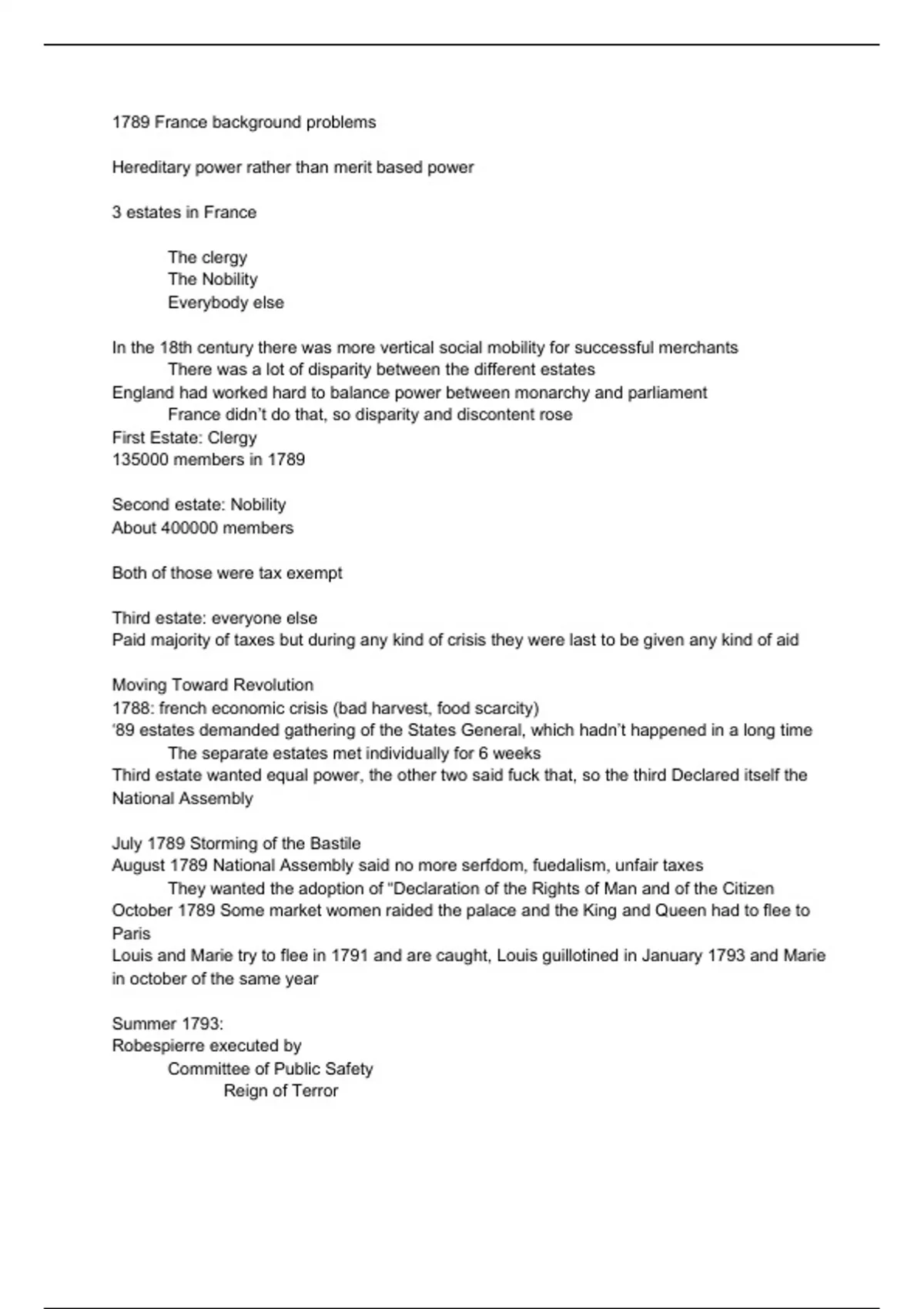 These notes cover the historical background of the French Revolution, giving context for the literary works of the time and the birth of the Enlightenment movement/period. There's a little cursing in it, I use my own thoughts in my notes when I'm trying to keep up during a lecture.