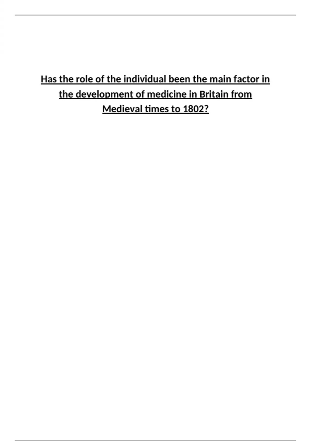 16/16 full mark answer to the question: Has the role of the individual been the main factor in the development of medicine in Britain from Medieval times to 1802? GRADE 9 ANSWER TO HELP YOU GET A GRADE 9 AT GCSE! WRITTEN BY A GRADE 9 GCSE STUDENT WHO FINISHED GCSES JUNE 2023.