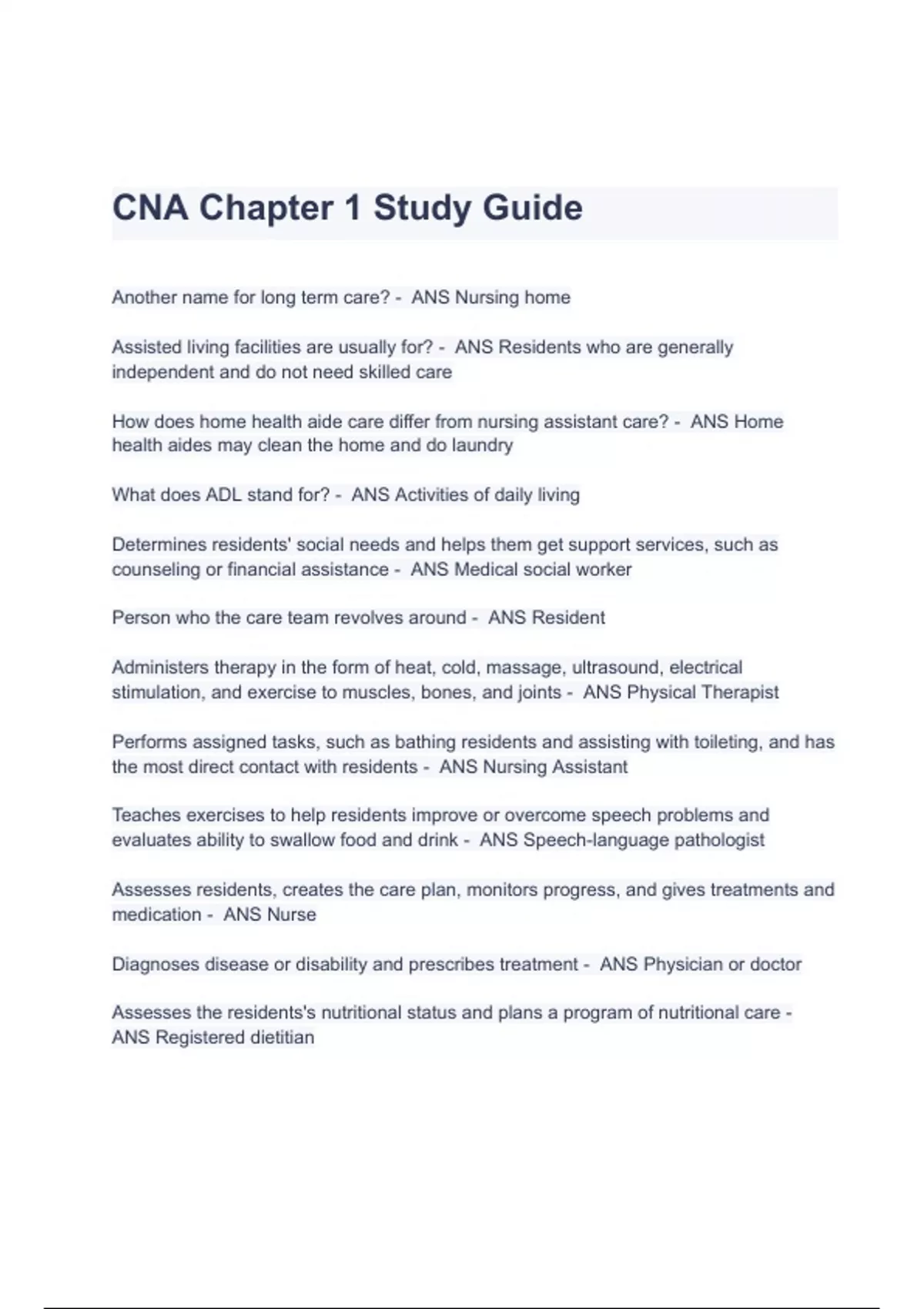 CNA Chapter 1 Study Guide Questions & Answers 2023 ( A+ GRADED 100% VERIFIED)