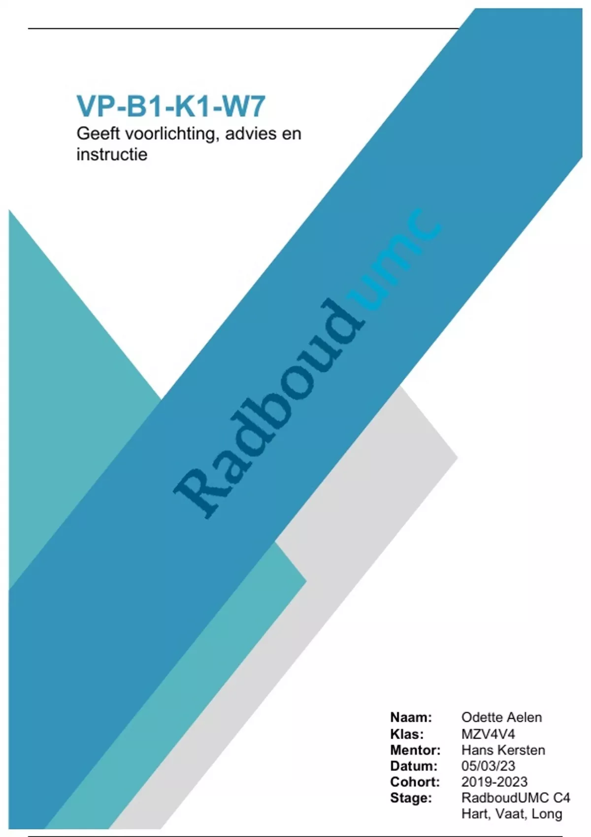 ROC-Nijmegen (leerjaar 4). Ik loop in het RadboudUMC stage op de afdeling C4