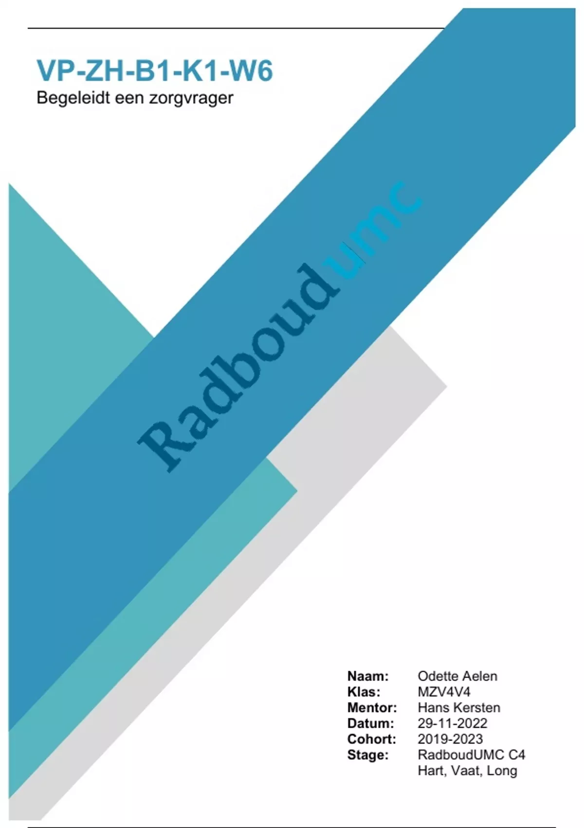 RadboudUMC Hart, Vaat en Long VP-ZH-B1-K1-W6