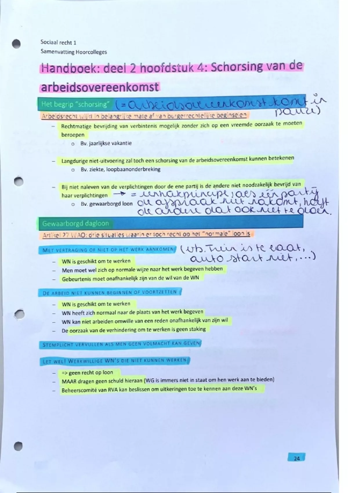 Dit document is de samenvatting van het hoofdstuk 'Schorsing van de AO', van het opleidingsonderdeel Sociaal recht 1 (92SWA1031) van de bachelor Sociaal werk aan de PXL. De samenvatting is een combinatie van informatie uit het handboek, PowerPoints en hoorcolleges. Daarbovenop zijn er verwijzingen naar de bijhorende wetteksten: - Schorsing AO (Hoofdstuk 4) - Art. 26-30sexies, 31, 49-51, 70-73