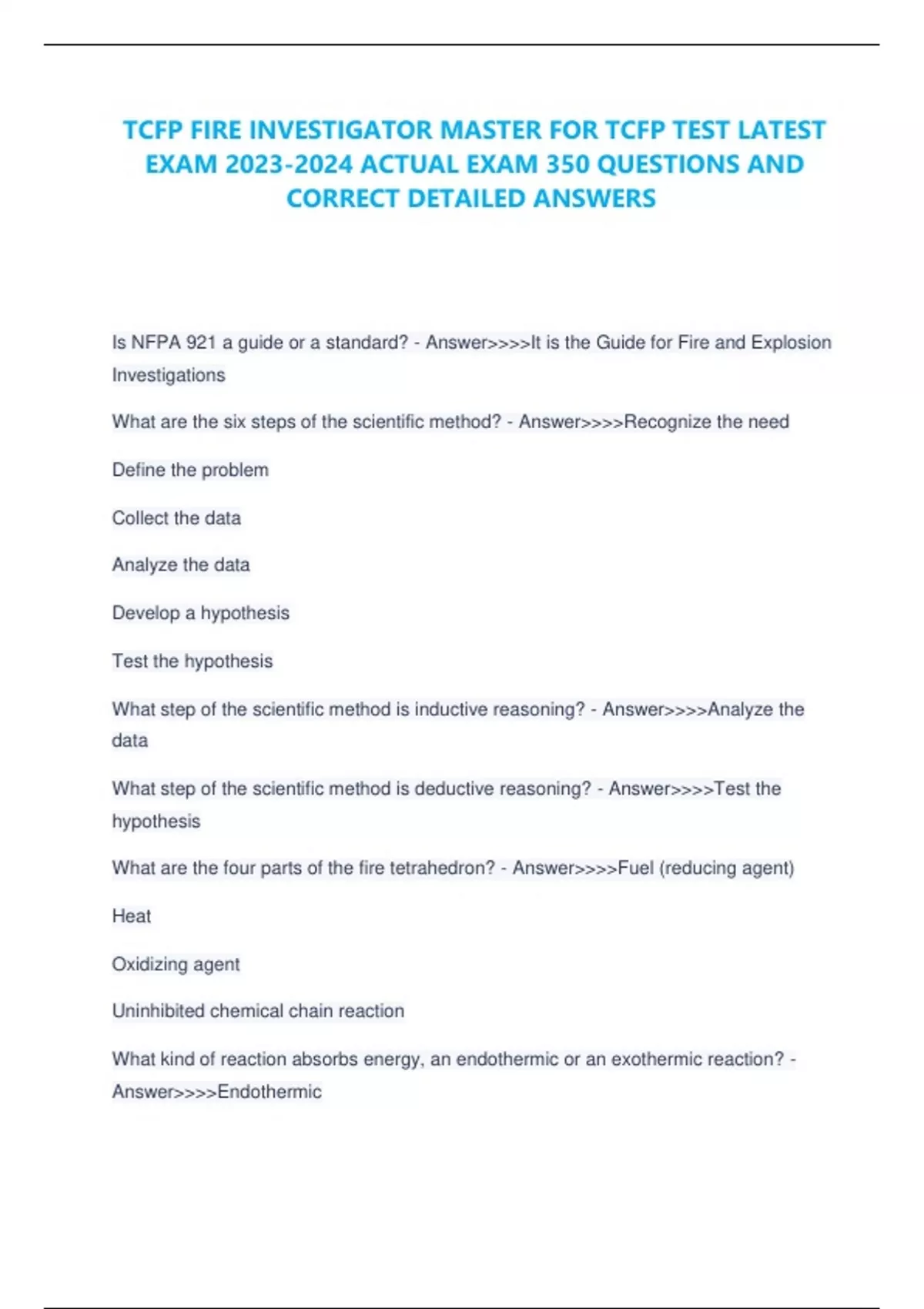TCFP FIRE INVESTIGATOR MASTER FOR TCFP TEST LATEST EXAM ACTUAL EXAM 350 Q&A
