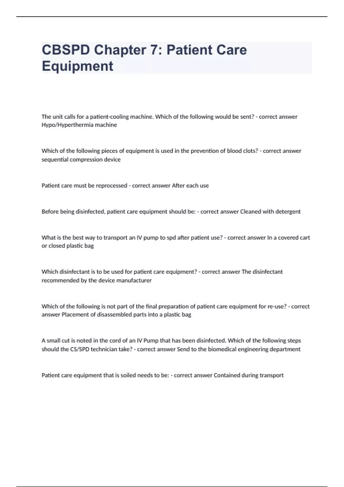 CBSPD Chapter 7 Patient Care Equipment fully solved graded A+ 2023