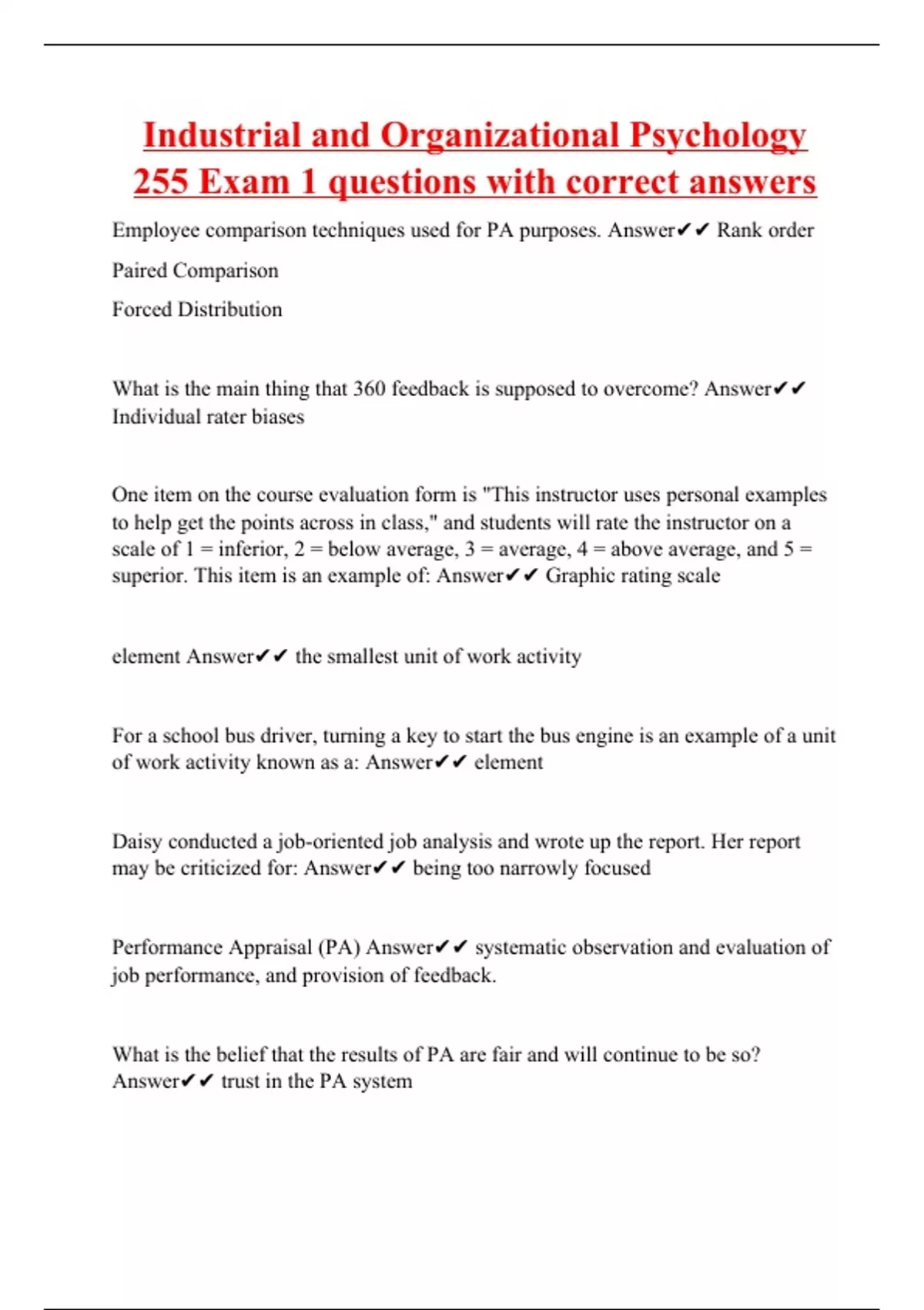 Industrial and Organizational Psychology 255 Exam 1 questions with correct answers