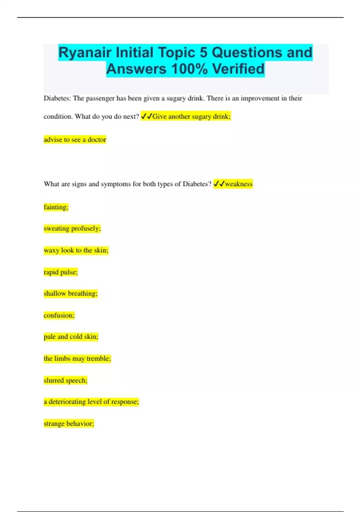 Ryanair Initial Topic 5 Questions and Answers 100% Verified