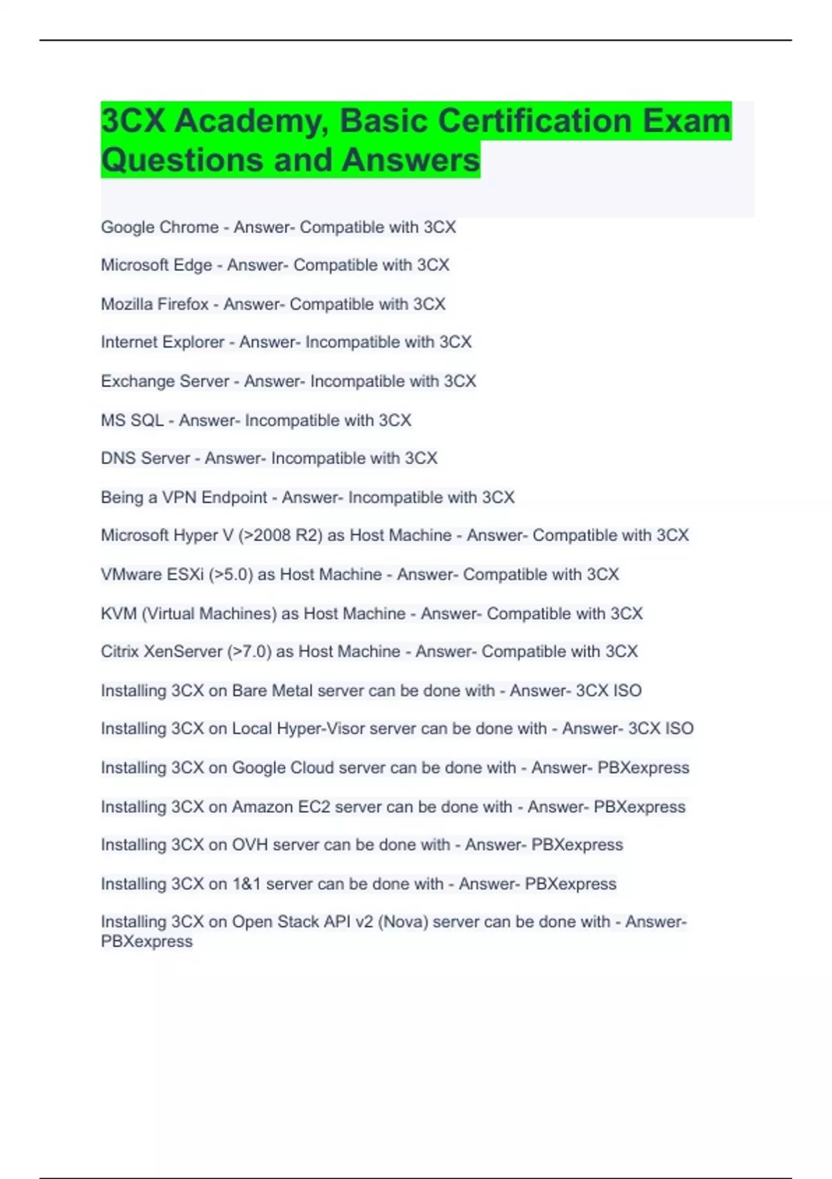 3CX Academy, Basic Certification Exam Questions and Answers
