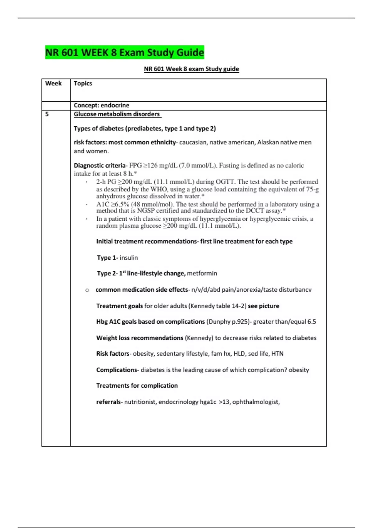 NR 601 WEEK 8 Exam Study Guide