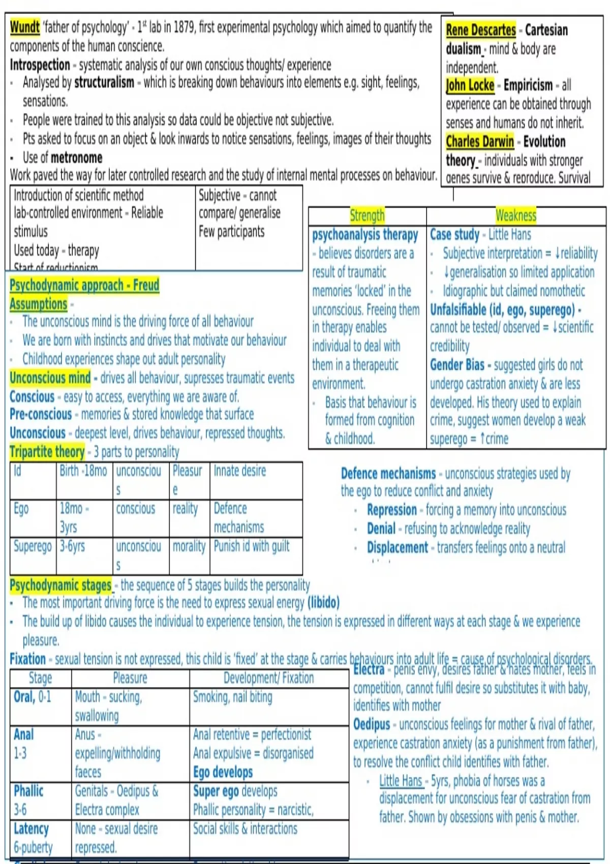Conscious – easy to access, everything we are aware of. - Basis that behaviour is developed. His theory used to explain