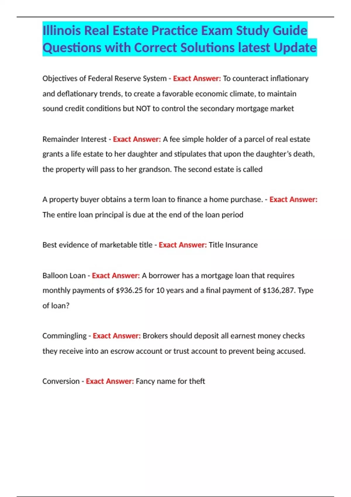 - Illinois Real Estate Practice Exa