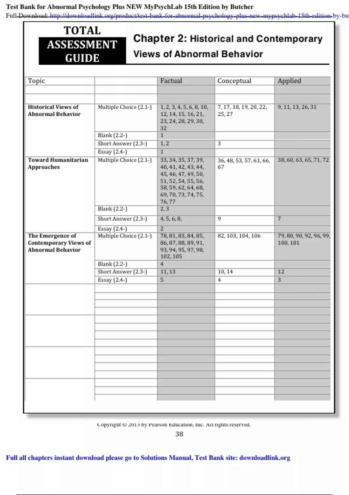 Test Bank for Abnormal Psychology Plus NEW MyPsychLab 15th Edition by Butcher.