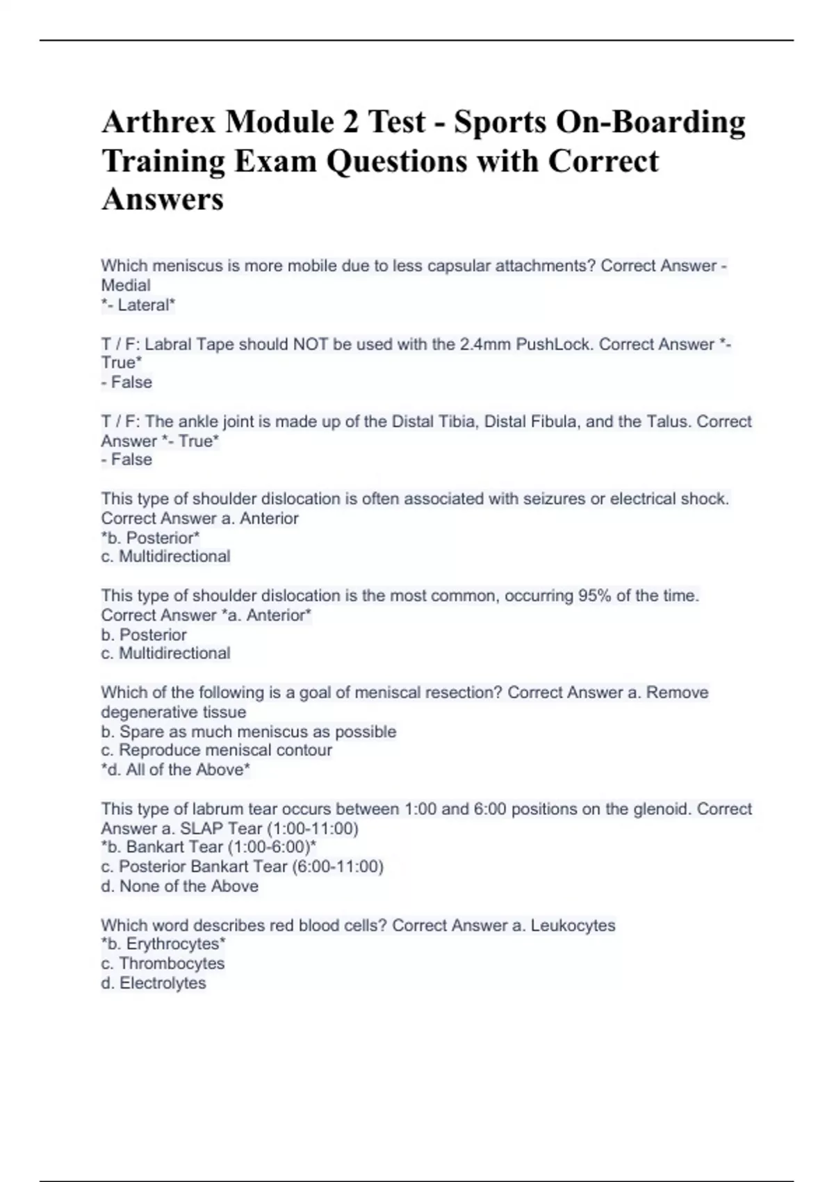d. Electrolytes The labral Swivelock is available in all of the following materials, except: Correct Answer