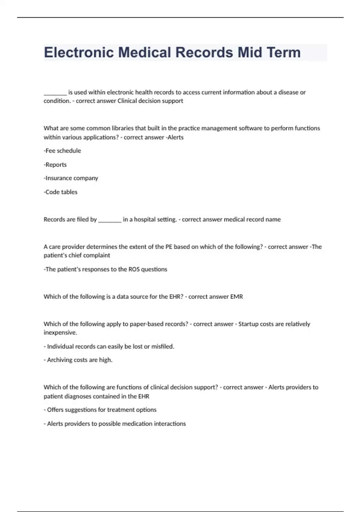 Electronic Medical Records Mid Term fully solved graded A+ 2023
