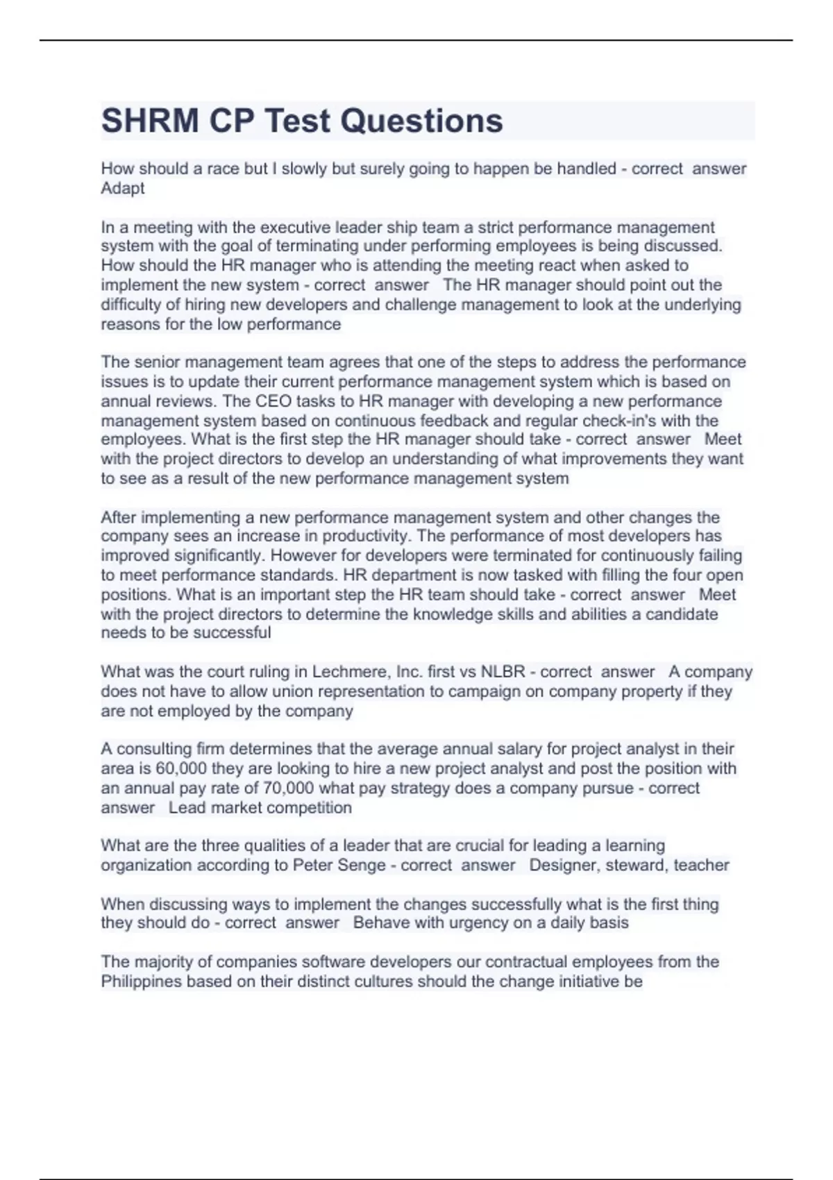 shrm cp test questions and answers 100 correct 2