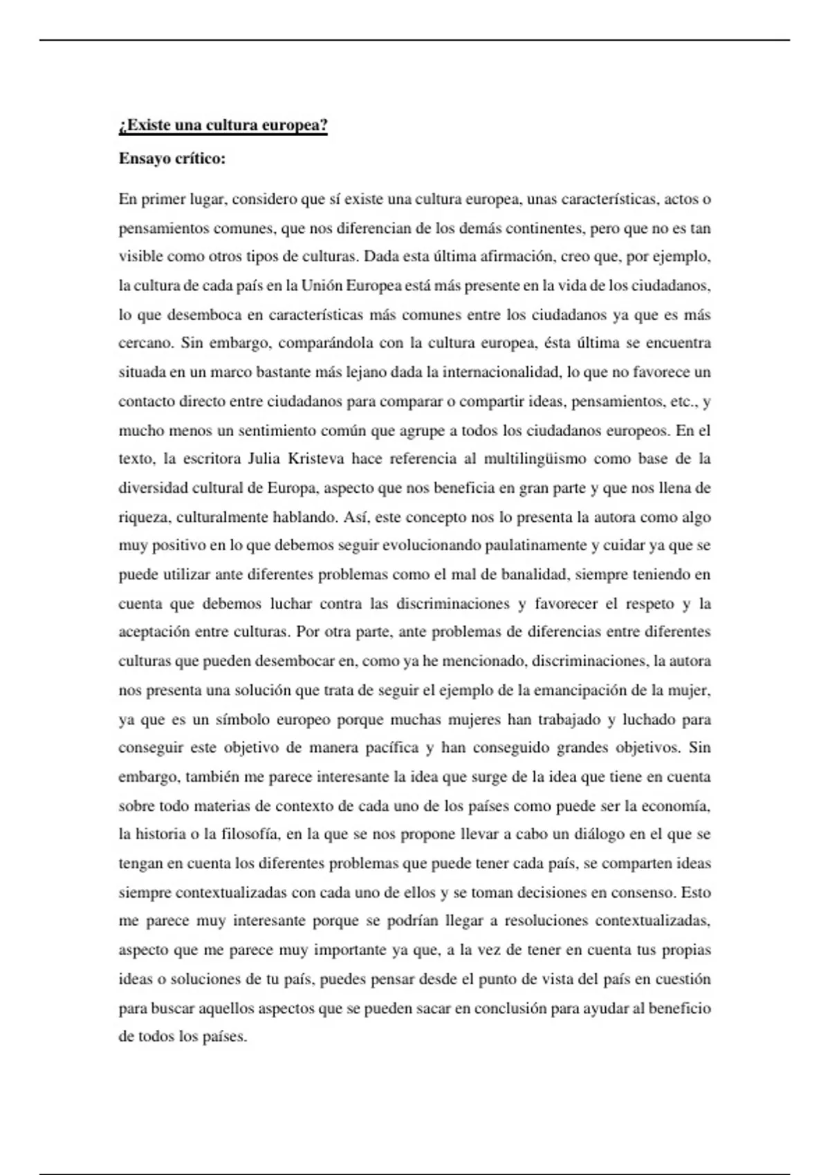 En primer lugar, considero que sí existe una cultura europea, unas características, actos o
