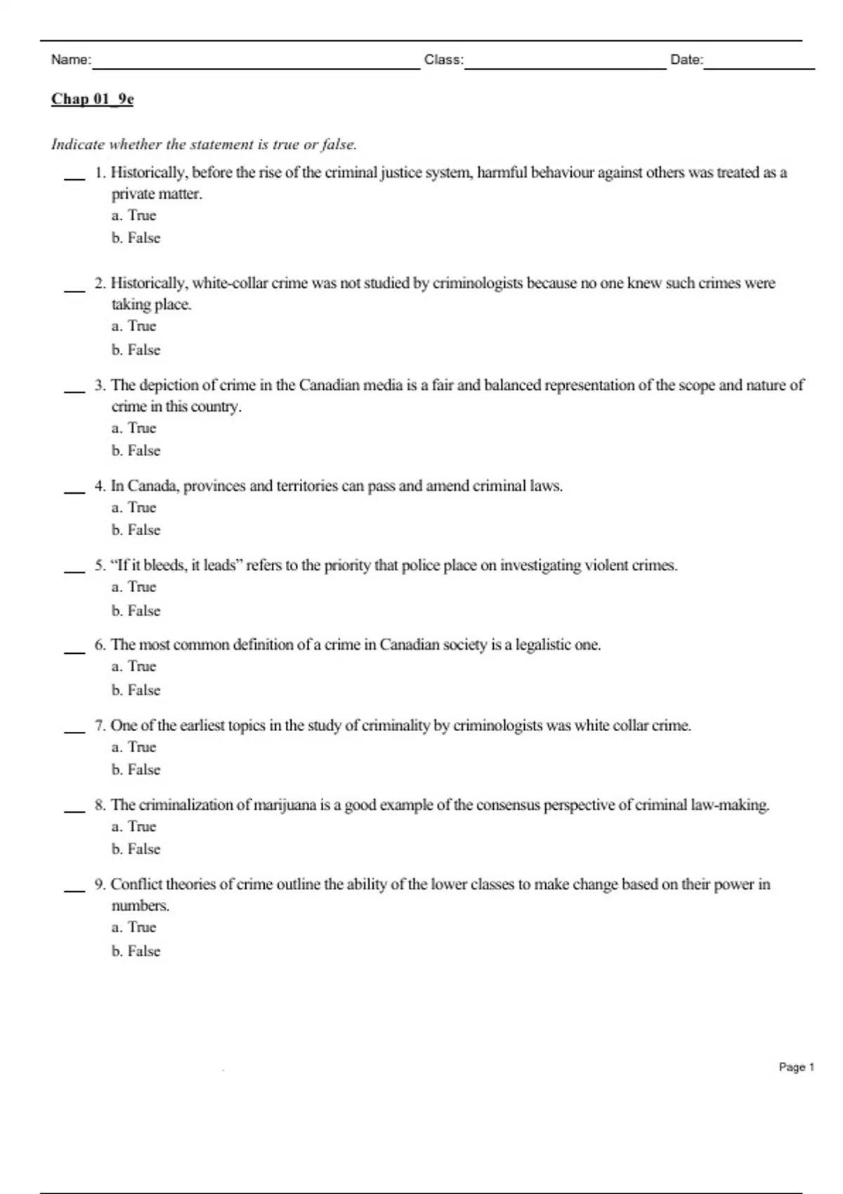 7. One of the earliest topics in the study of criminality by criminologists was white collar crime.