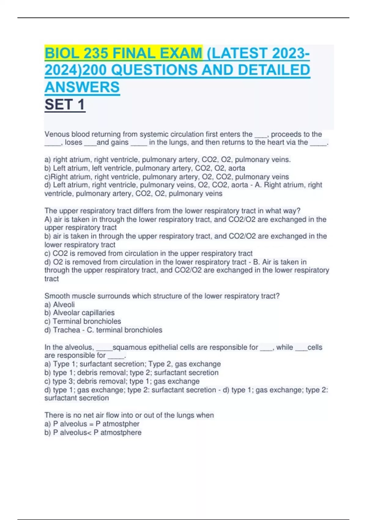 BIOL 235 FINAL EXAM (LATEST )200 QUESTIONS AND DETAILED ANSWERS