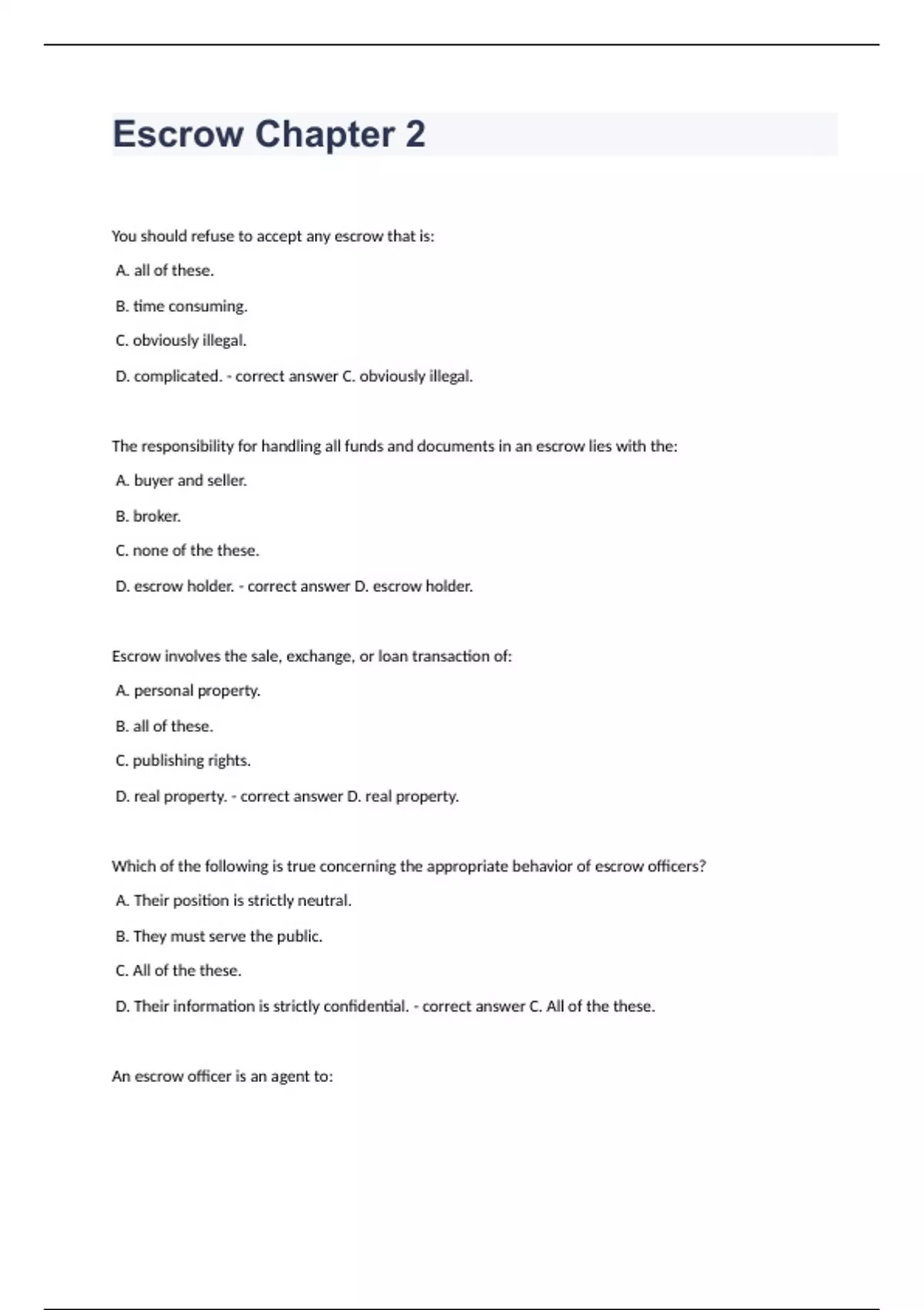 Escrow Chapter 2 questions and answers graded A+ 2023
