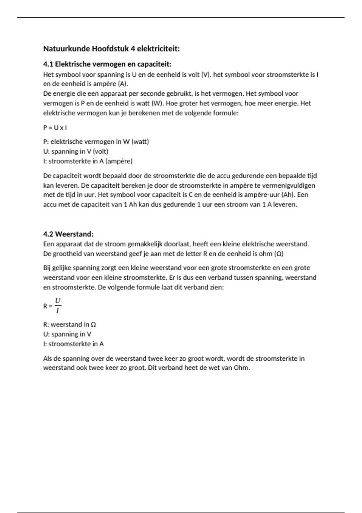 Samenvatting Natuurkunde Hoofdstuk 4 elektriciteit