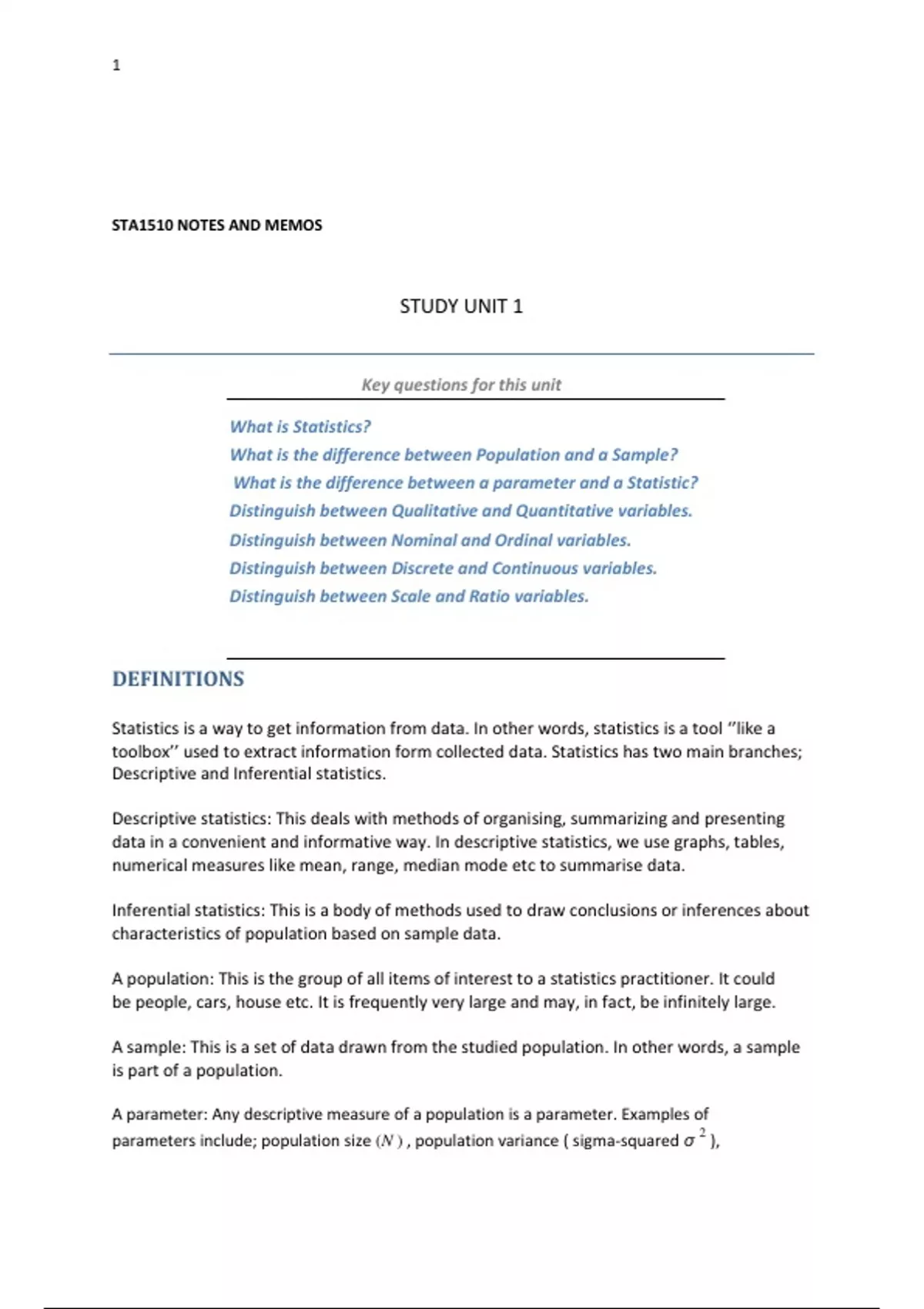 A statistic: Any descriptive measure of a sample is a statistic. Examples include; sample
