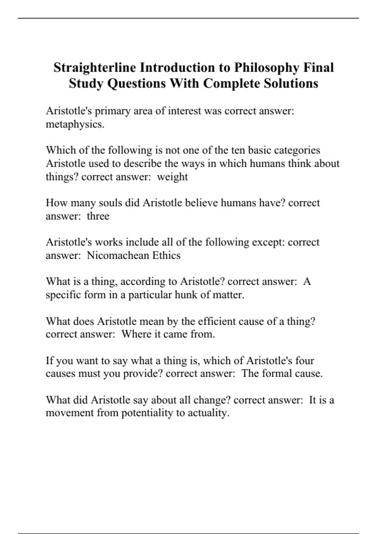 Straighterline Introduction to Philosophy Final Study Questions With Complete Solutions.