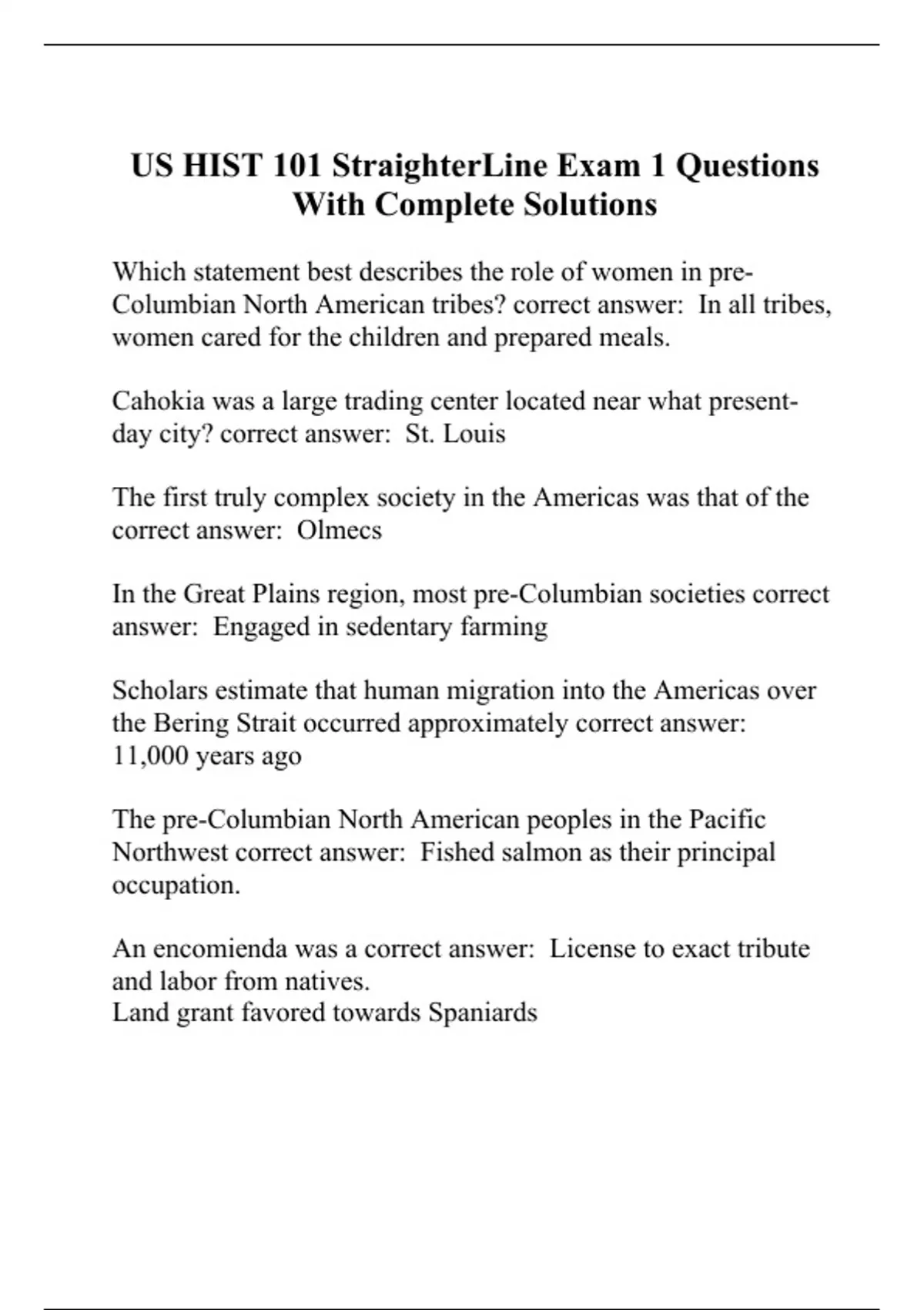 US HIST 101 StraighterLine Exam 1 Questions With Complete Solutions.