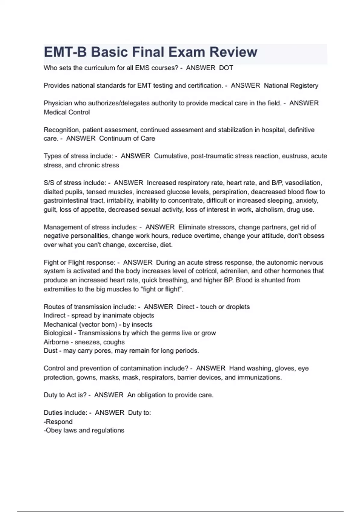 emt b basic final exam review