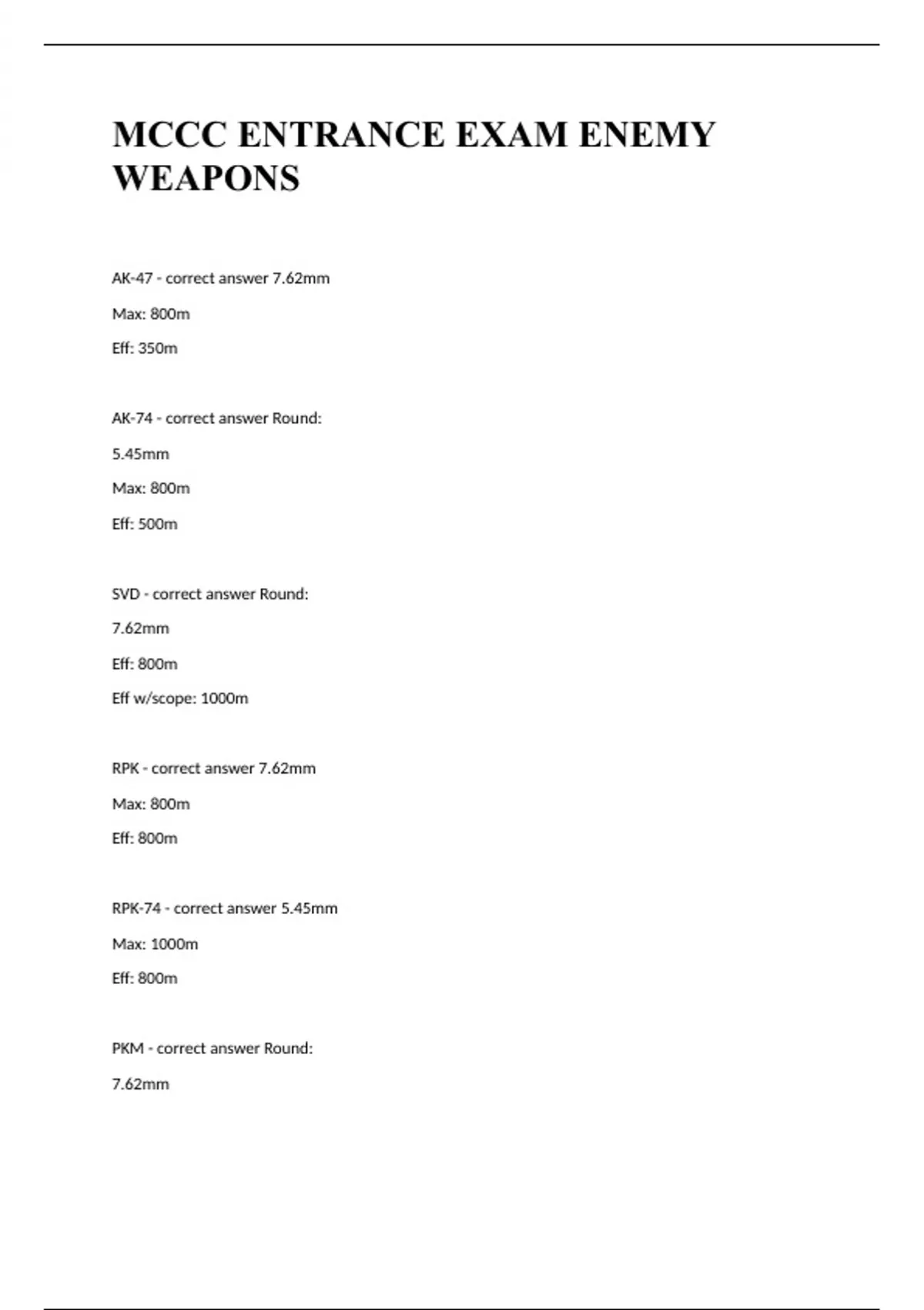 MCCC ENTRANCE EXAM ENEMY WEAPONS