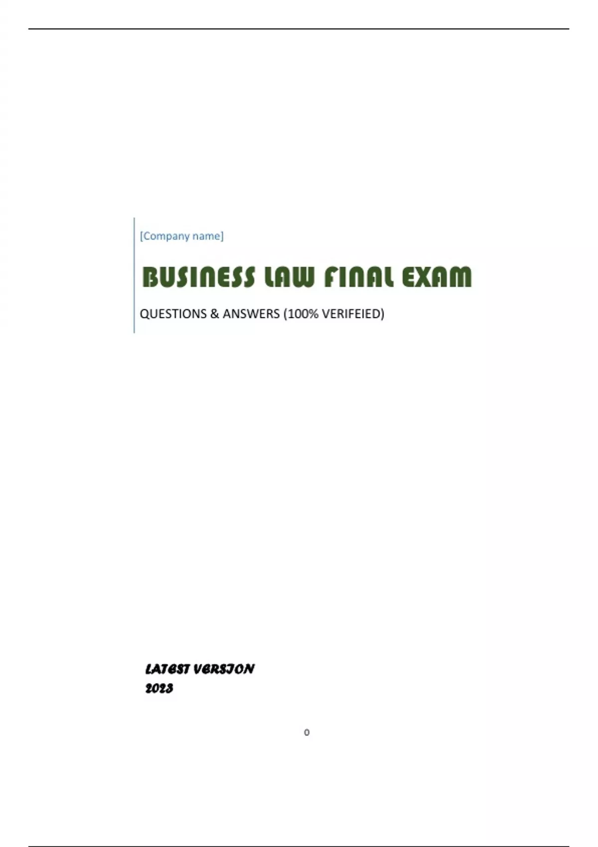 BUSINESS LAW FINAL EXAM - QUESTIONS & ANSWERS (RATED A+) 100% VERIFIED VERSION 2023