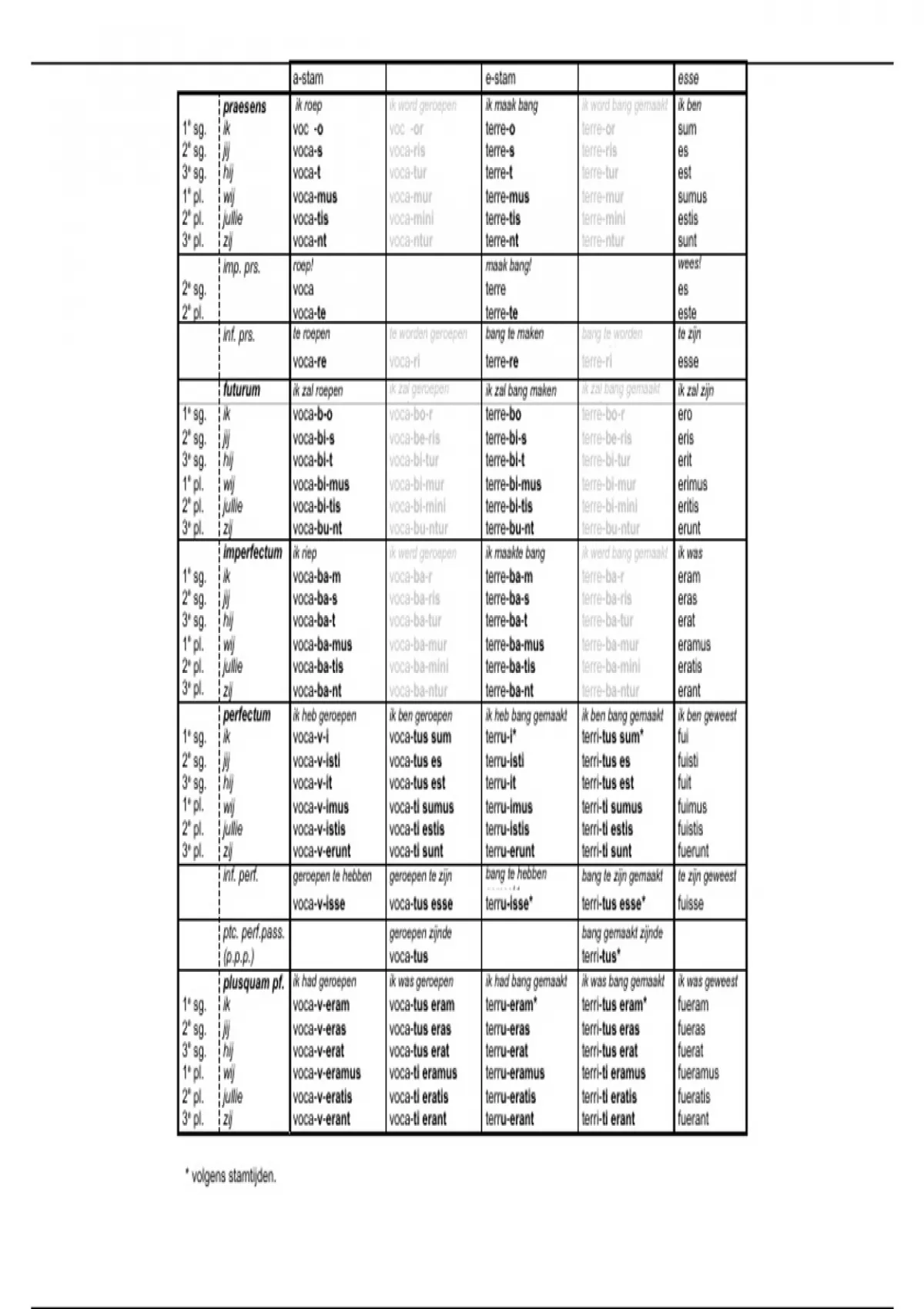 3e sg. hij voca-v-it voca-tus est terru-it terri-tus est fuit