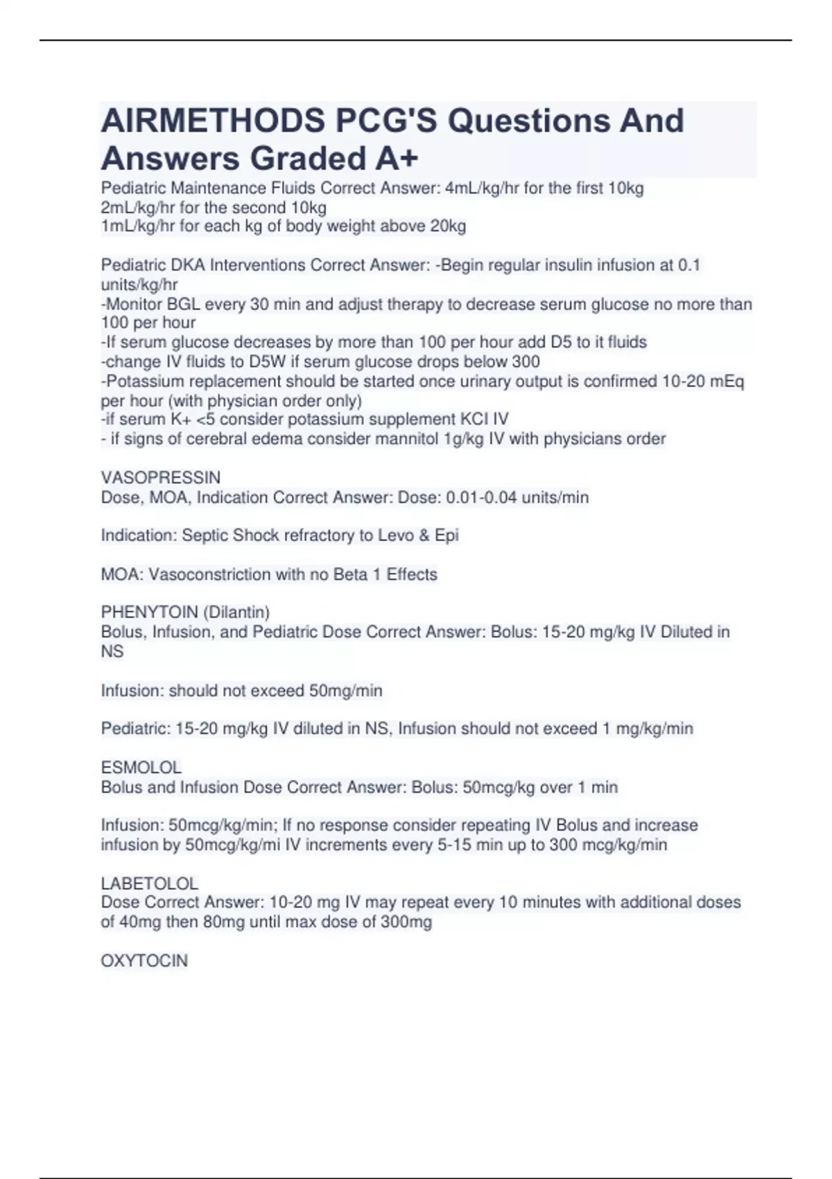 AIRMETHODS PCG'S Questions And Answers Graded A+