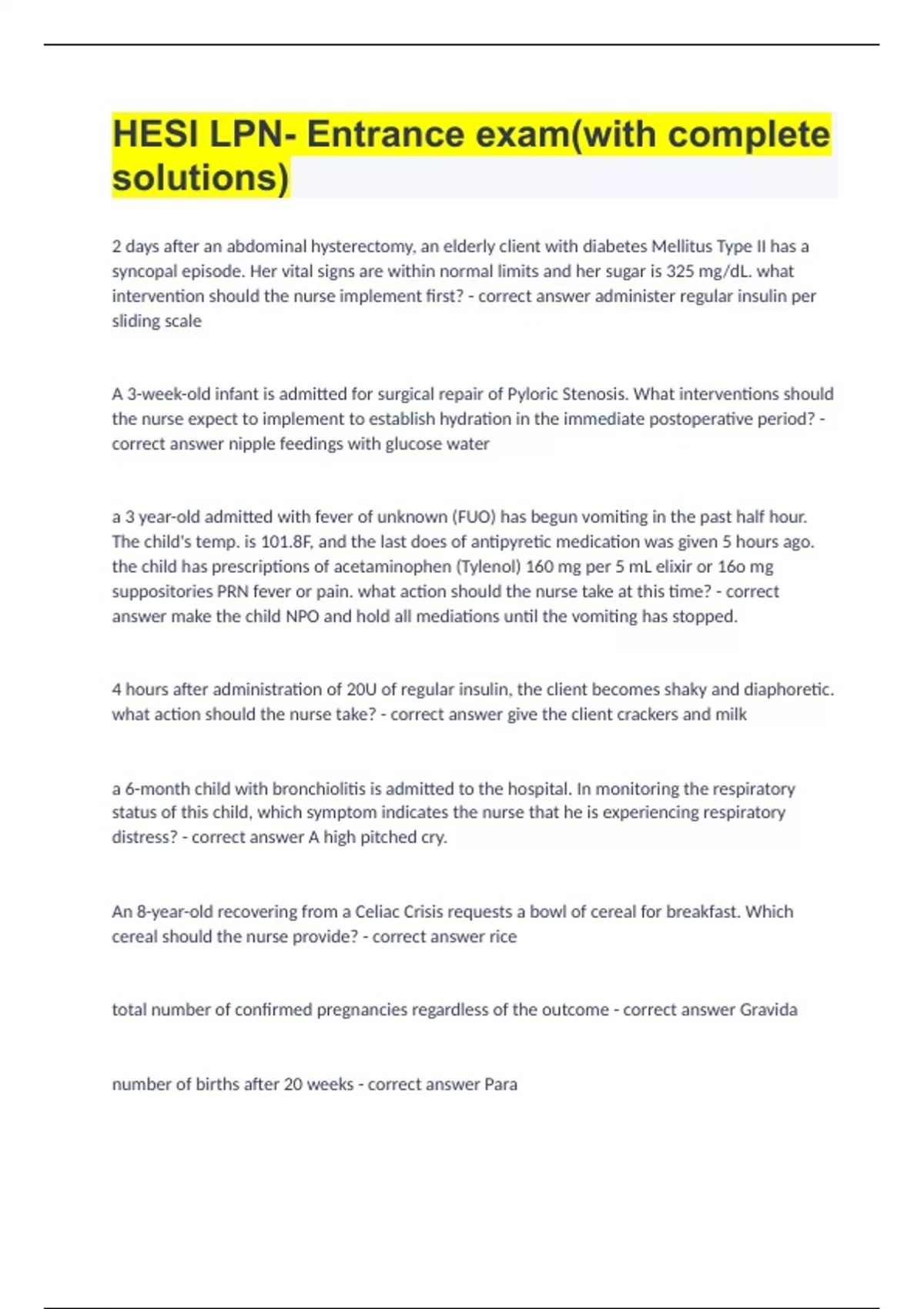 HESI LPN- Entrance exam(with complete solutions)