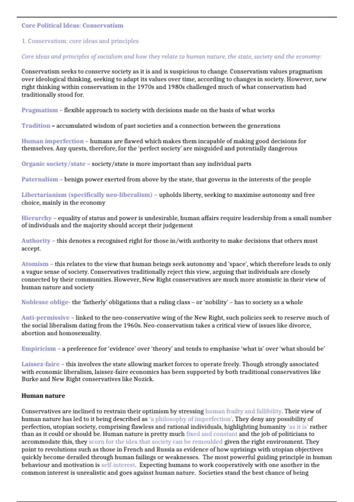 Summary A-Level Edexcel Politics Paper 1 Conservatism revision notes