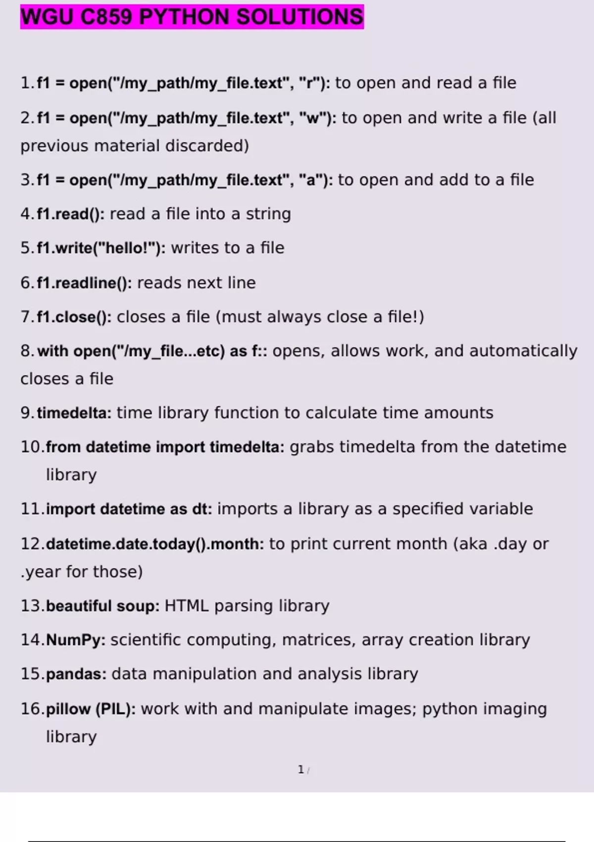 WGU C859 PYTHON STUDY PACKAGE WITH SOLUTIONS QUESTIONS AND ANSWERS A+ RATED
