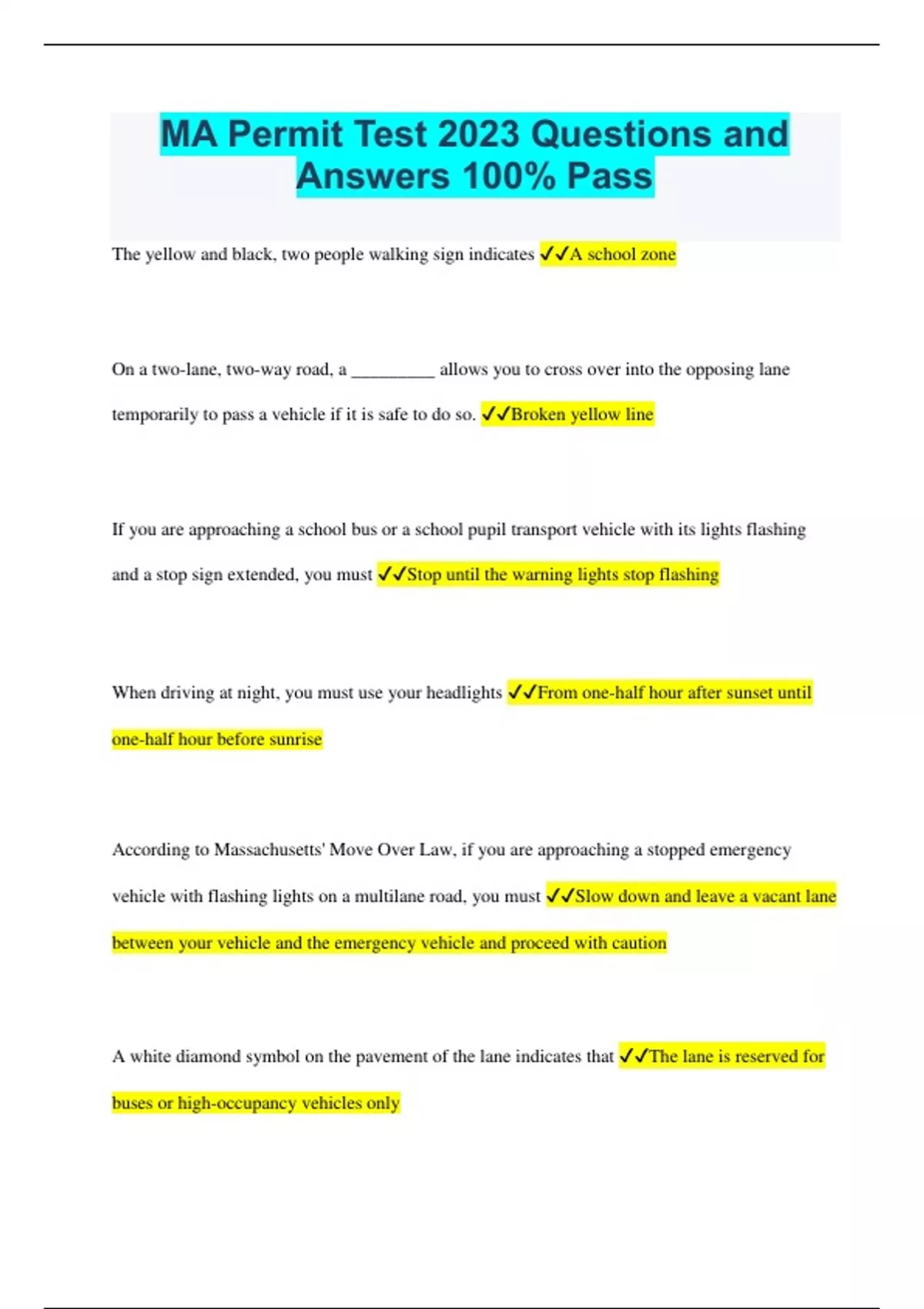 MA Permit Test 2023 Questions and Answers 100% Pass
