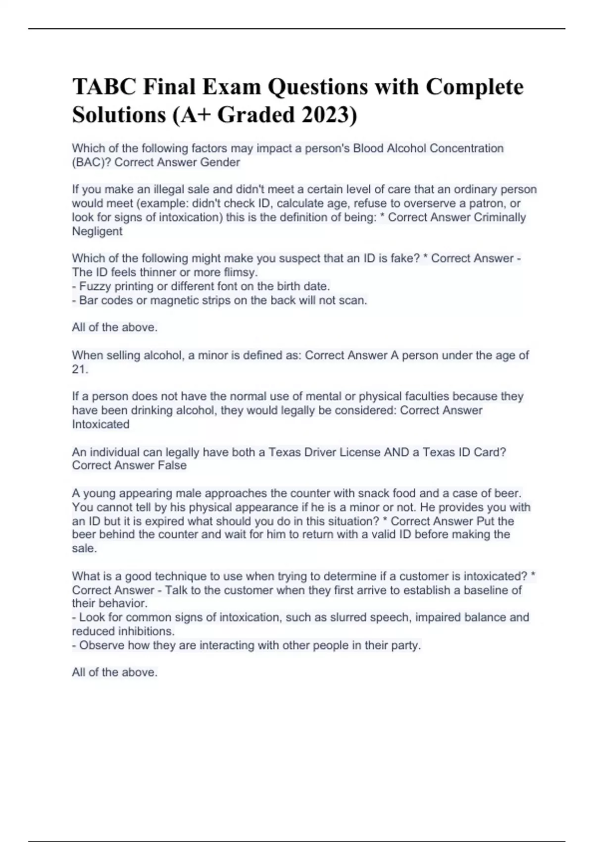 TABC Final Exam Questions with Complete Solutions (A+ Graded 2023)