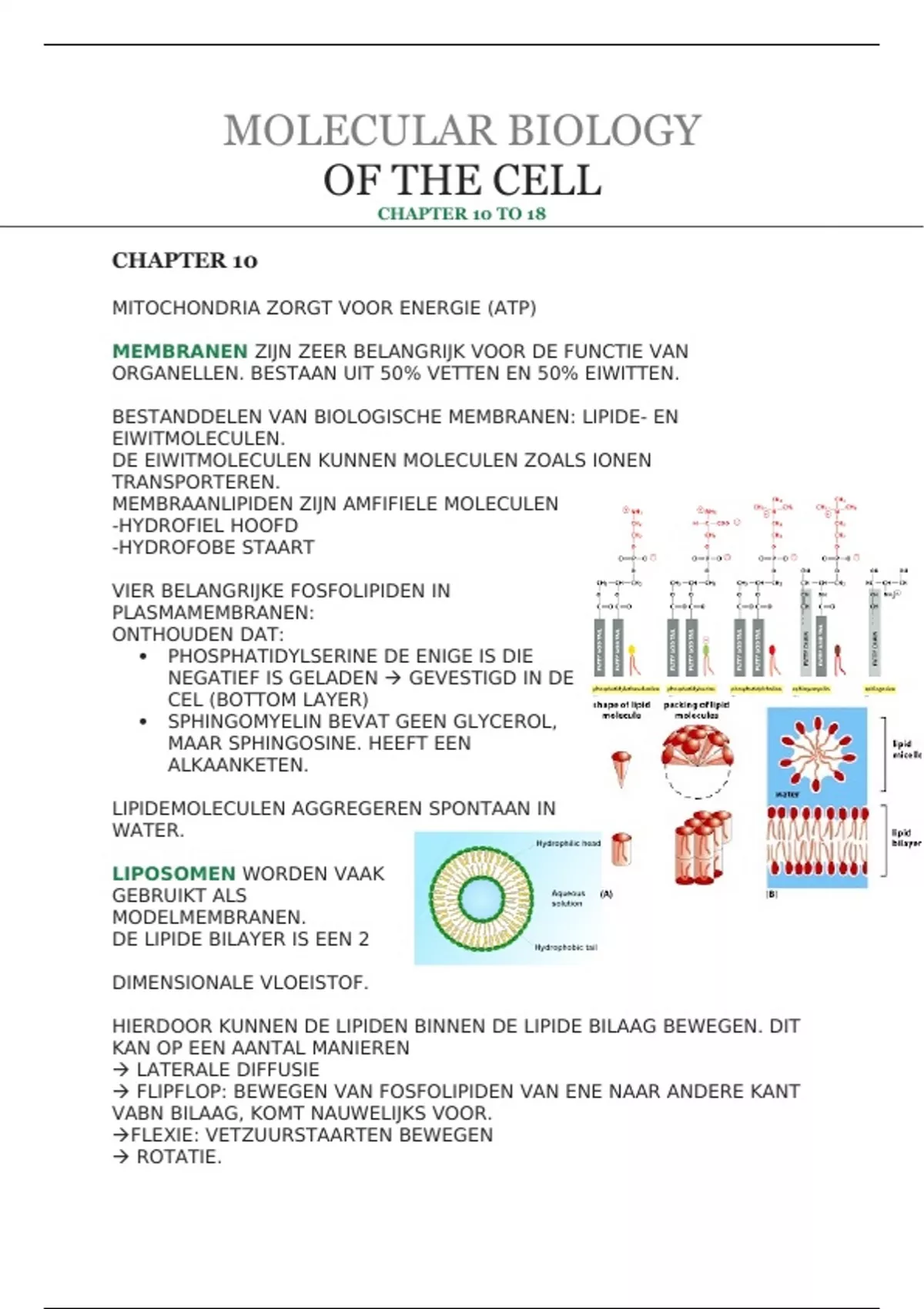 Samenvatting Molecular Biology of the Cell 2 - Chapter 10 -18 (WBFA007-04)