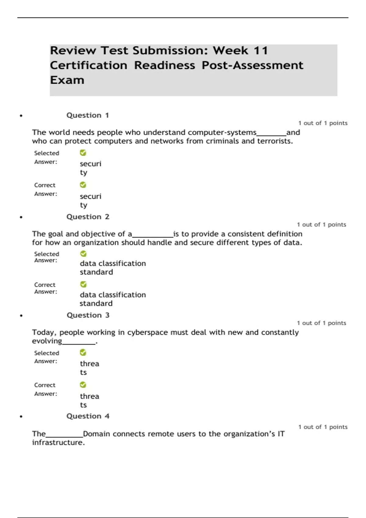 Review Test Submission: Week 11 Certification Readiness Post-Assessment Exam