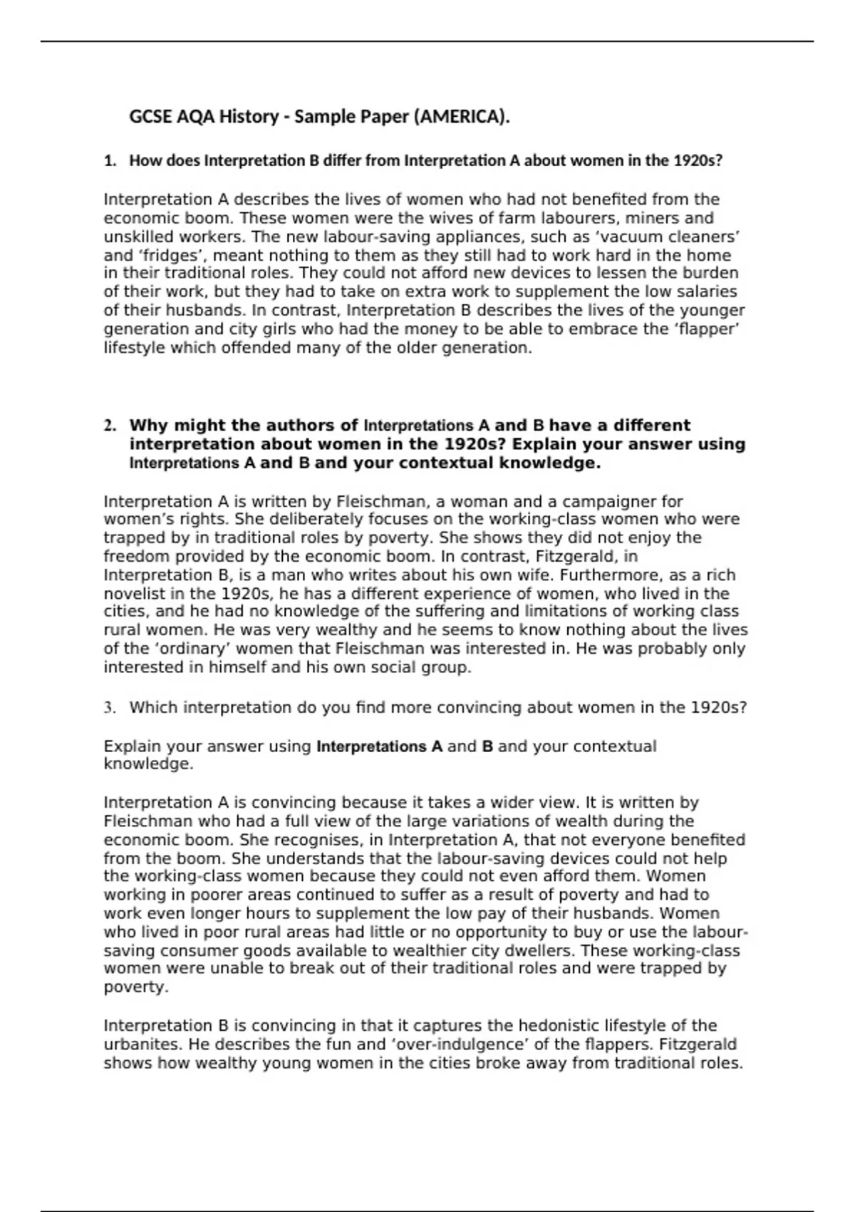 GCSE AQA History - Sample Paper (AMERICA).