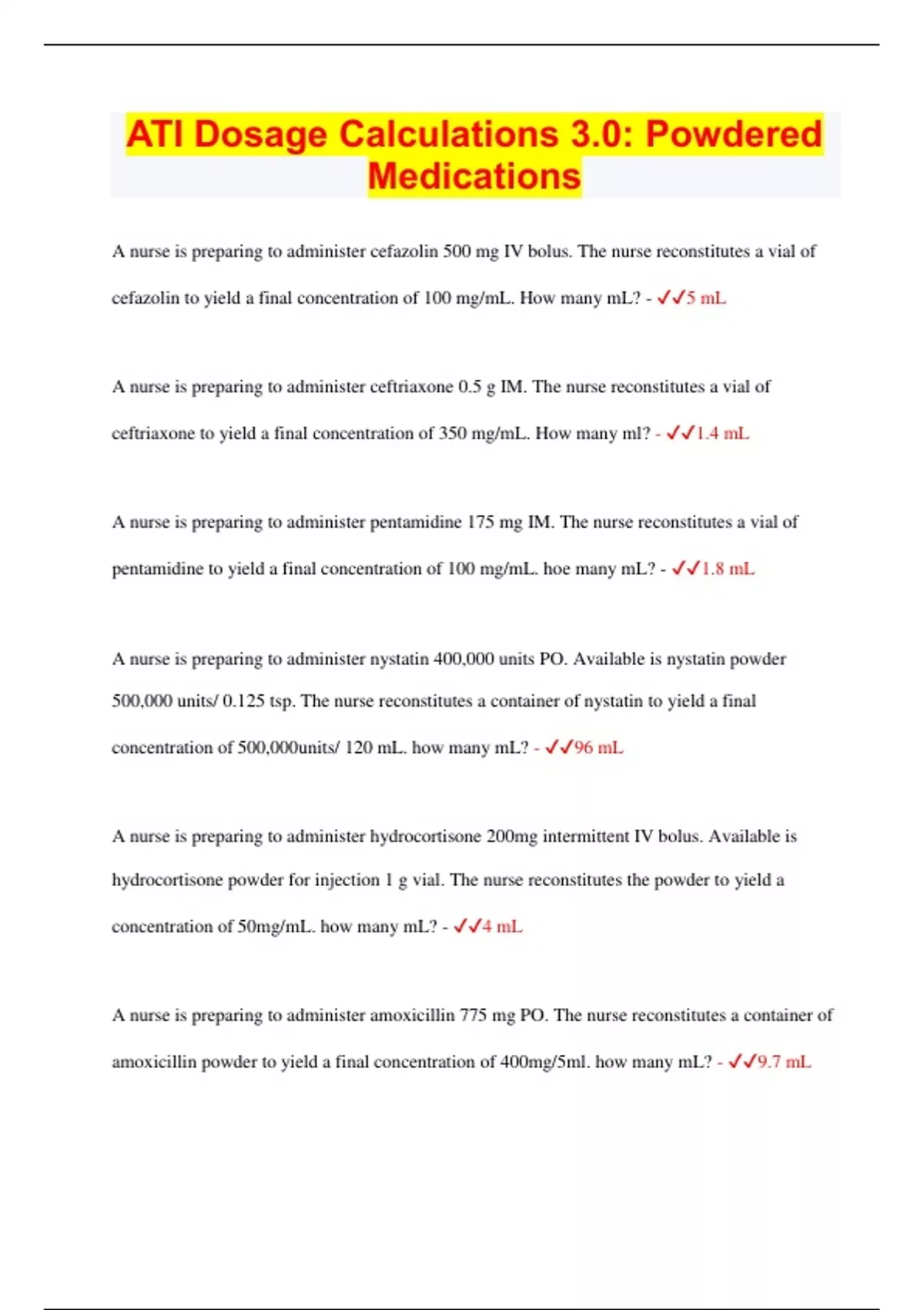 ATI Dosage Calculations 3.0: Powdered Medications 2023 | 100% Correct Answers | Updated & Verified