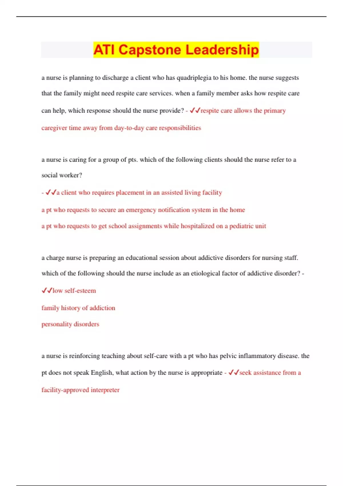 ATI Capstone Leadership 2023 | 100% Correct Answers | Updated & Verified