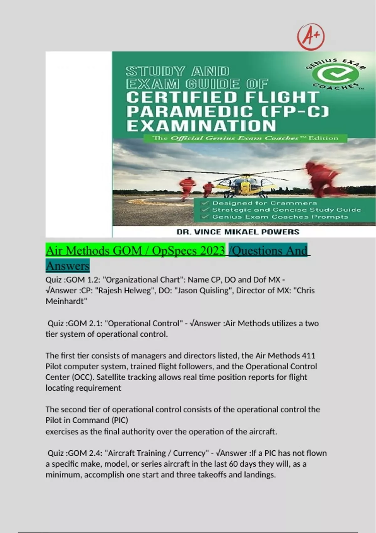 Quiz :GOM 2.1: "Operational Control" - √Answer :Air Methods utilizes a two