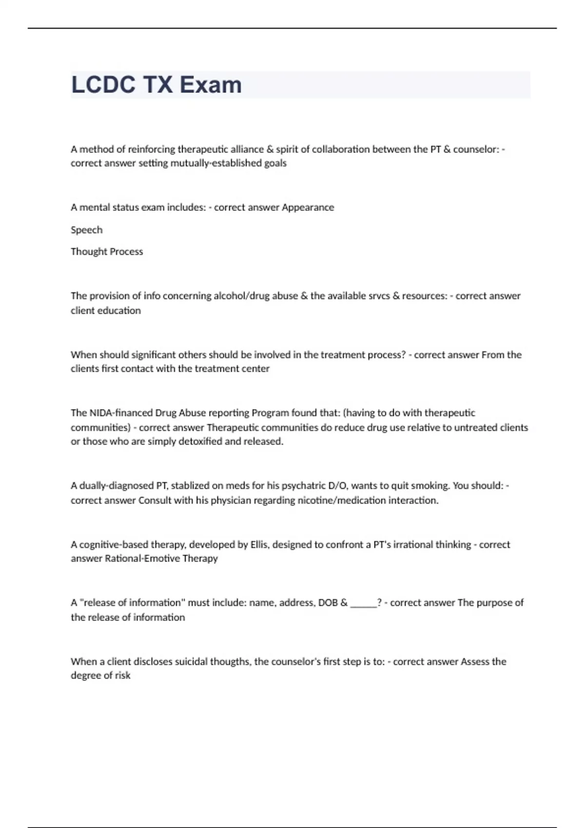 Exam of 52 pages for the course LCDC at LCDC (LCDC TX Exam.)
