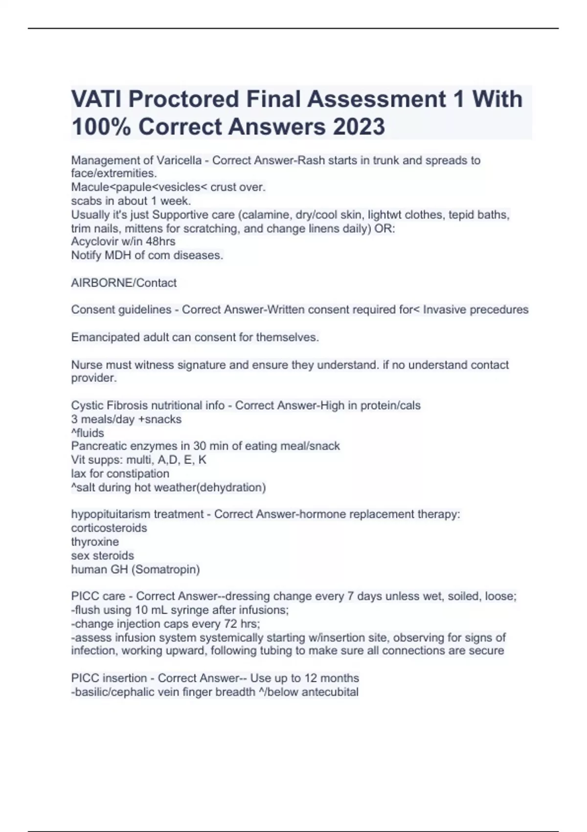 VATI Proctored Final Assessment 1 With 100% Correct Answers 2023