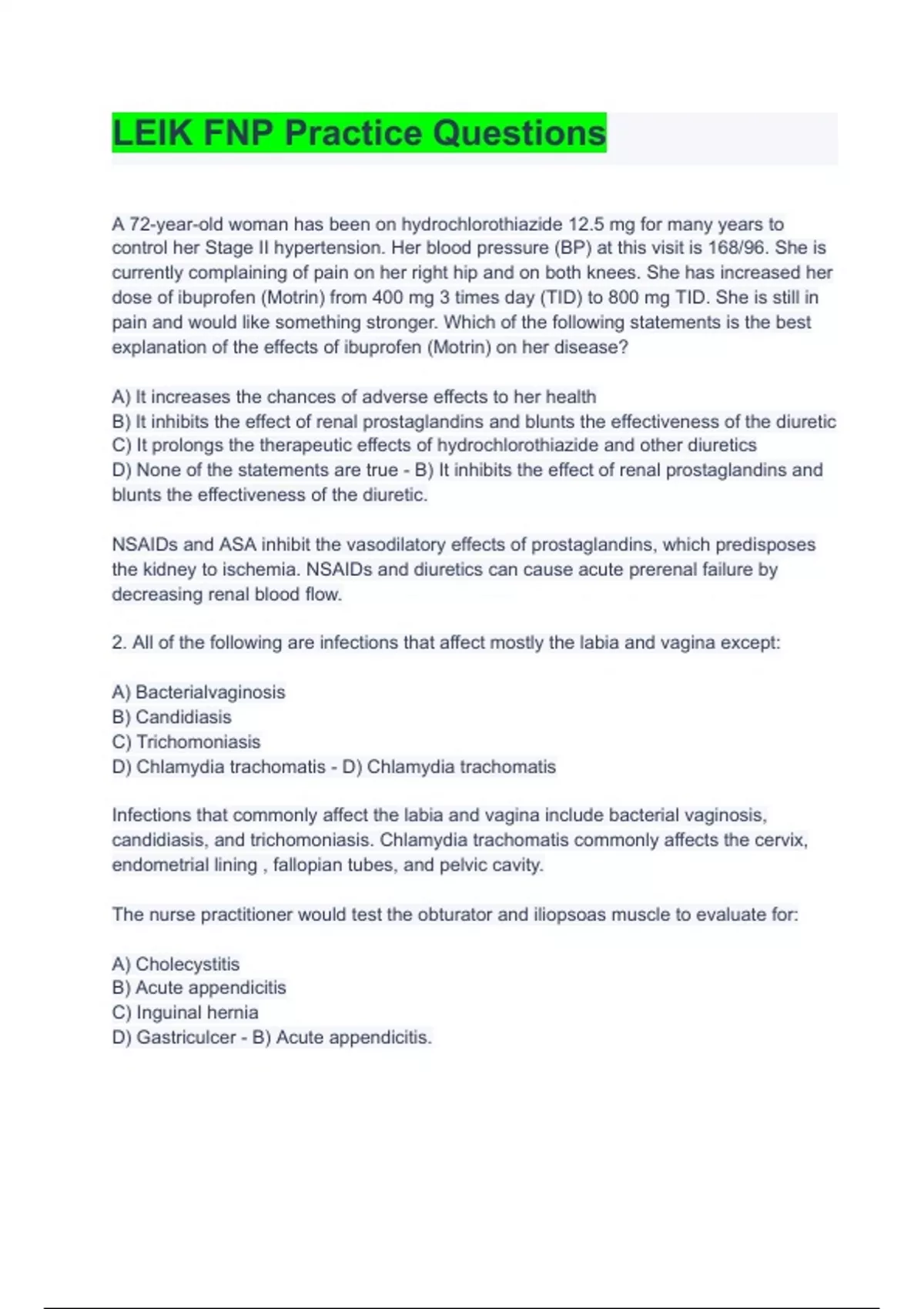 LEIK FNP Practice Questions and answers 2023/full solution/A+ grade